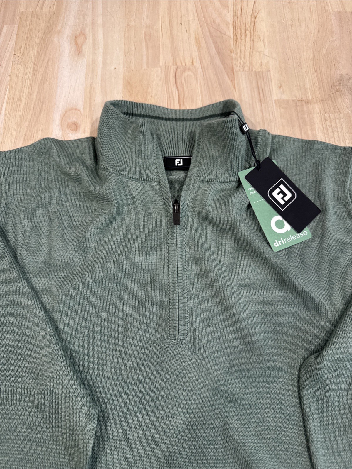 FootJoy Golf Sweater Pullover 1/2 Zip - Large - Heather Green Wool