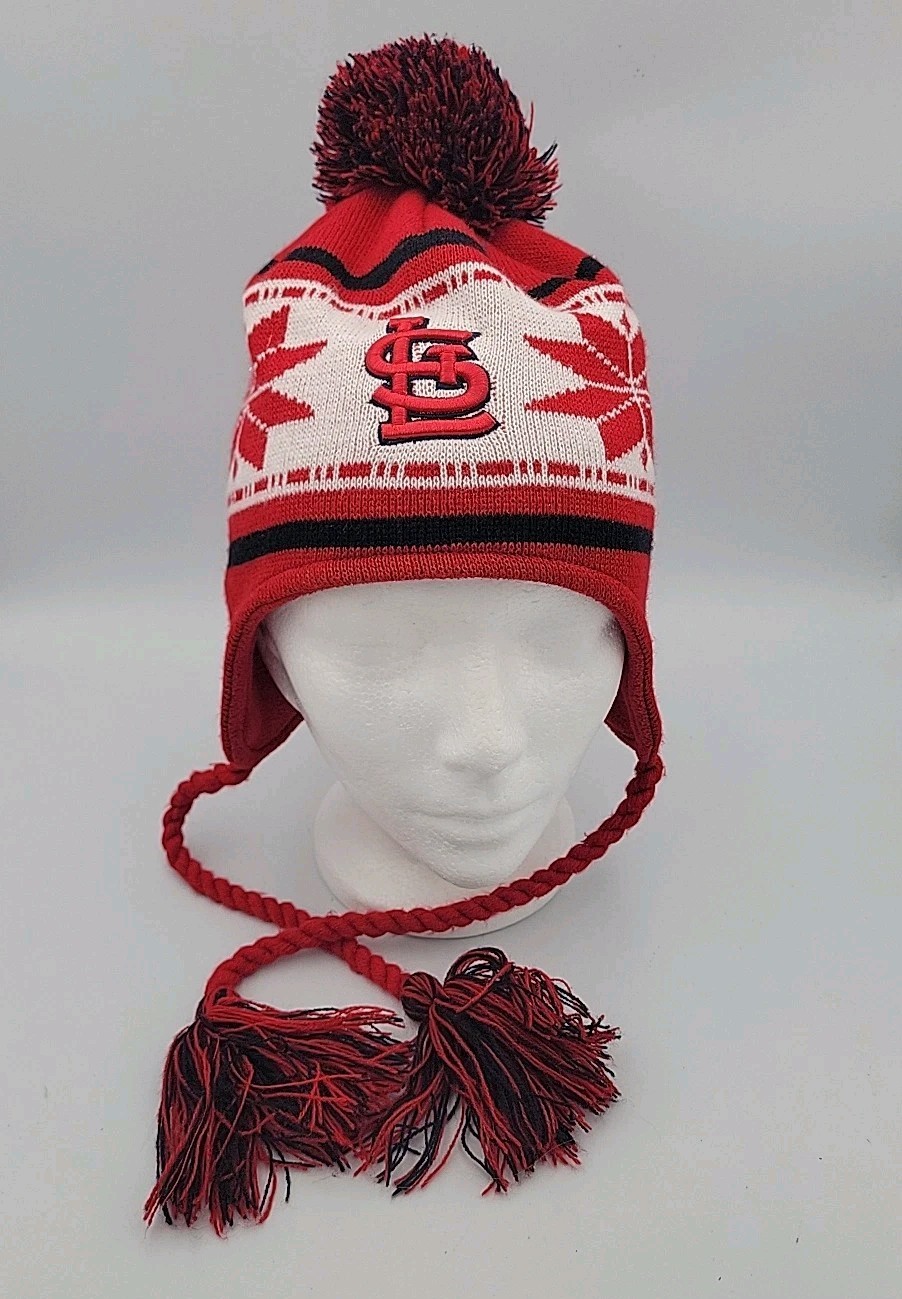 • St. Louis Cardinals New Era Beanie Winter Hat Ear Flaps Tassles Pom Fleece Lined