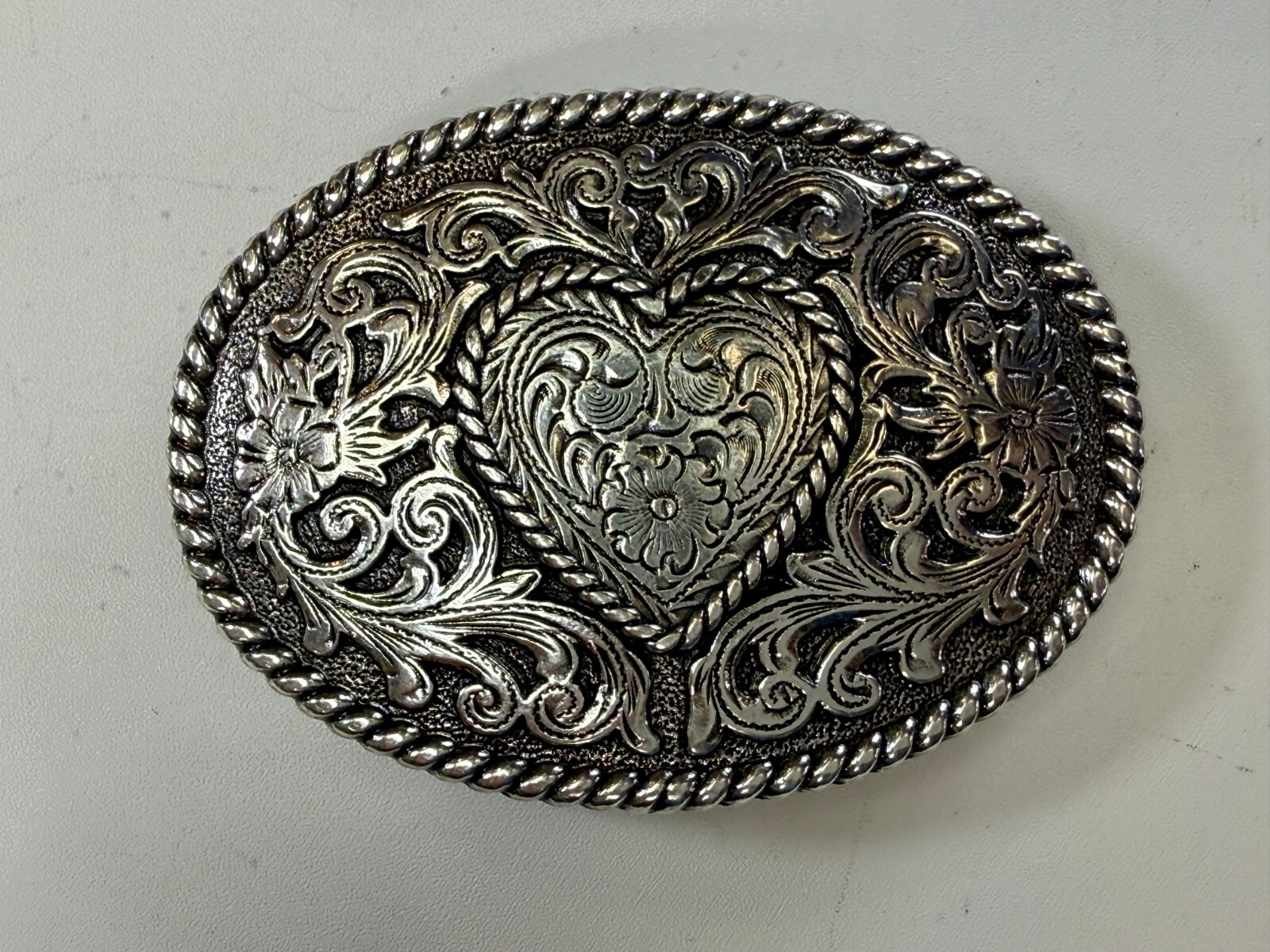 как выглядит Western Heart Centered On Ornate Flower Swirl Belt Buckle Made For 1" Belt фото