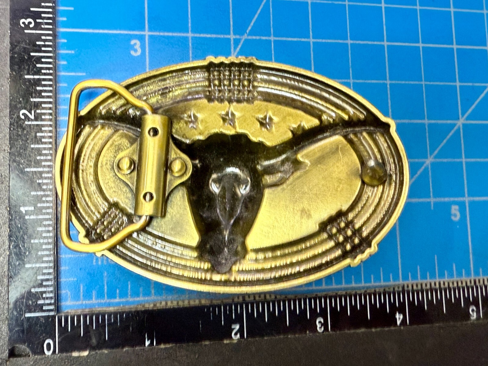 3D Longhorn Bull Head with Stars Rope Border Western Rodeo Cowboy Belt Buckle