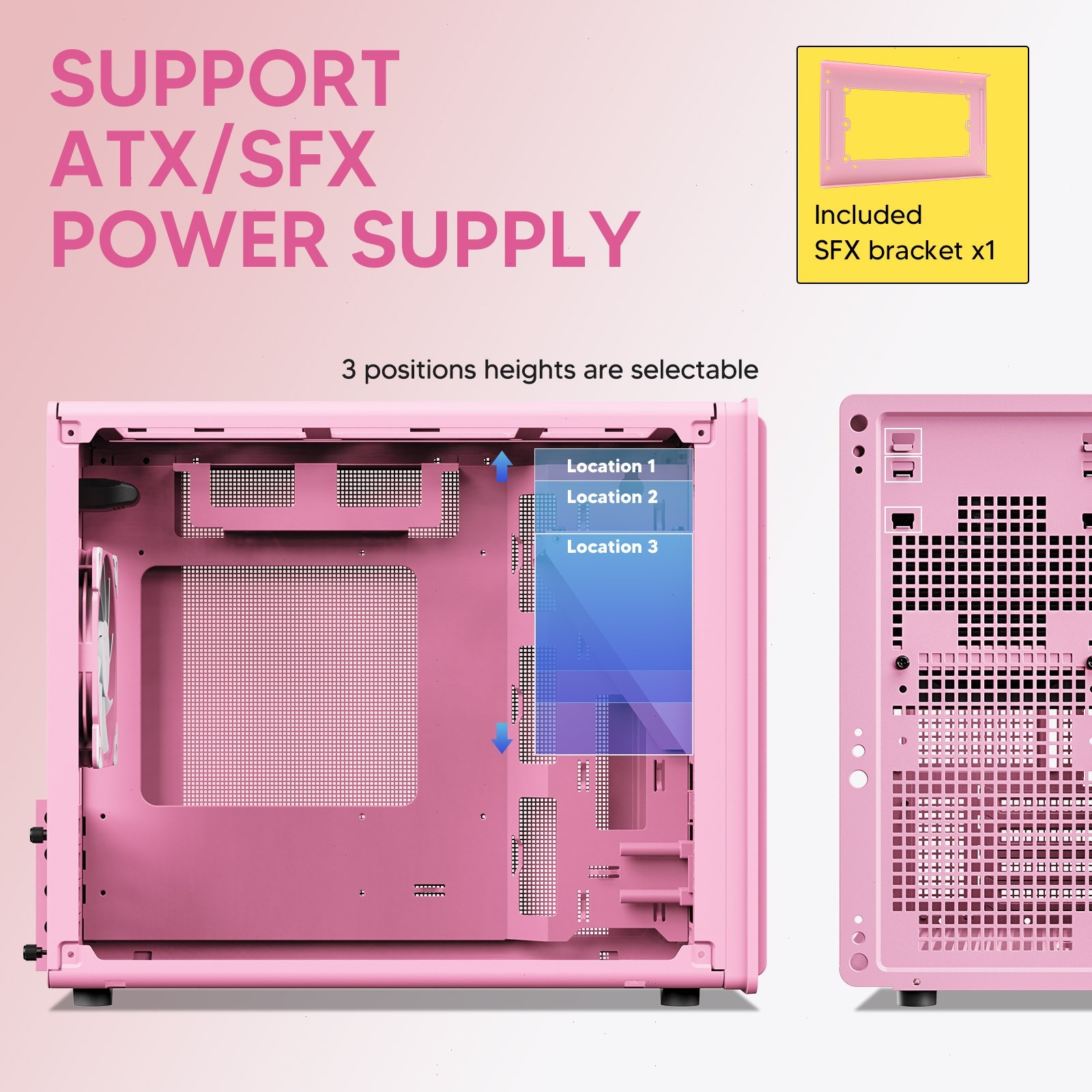 Vetroo M06 M-ATX/Mini-ITX Gaming PC Case, Adjustable PSU Mount, USB Type-C I/O
