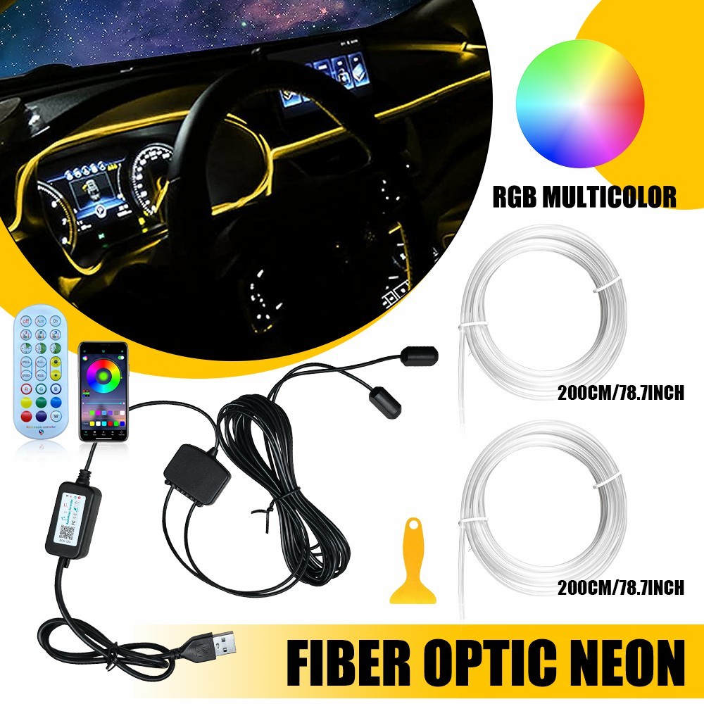 Neon Light Trim Glow Optic Fiber Strip LED Car Interior Ambient Lighting Kit NEW