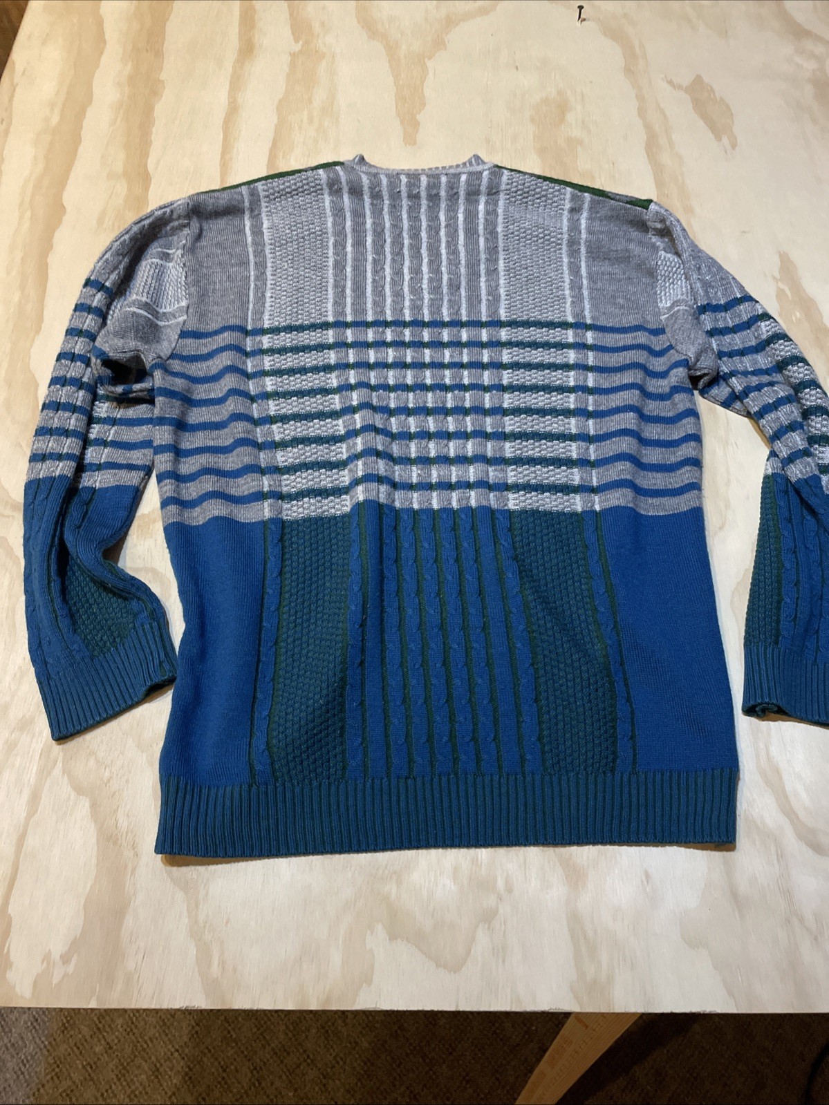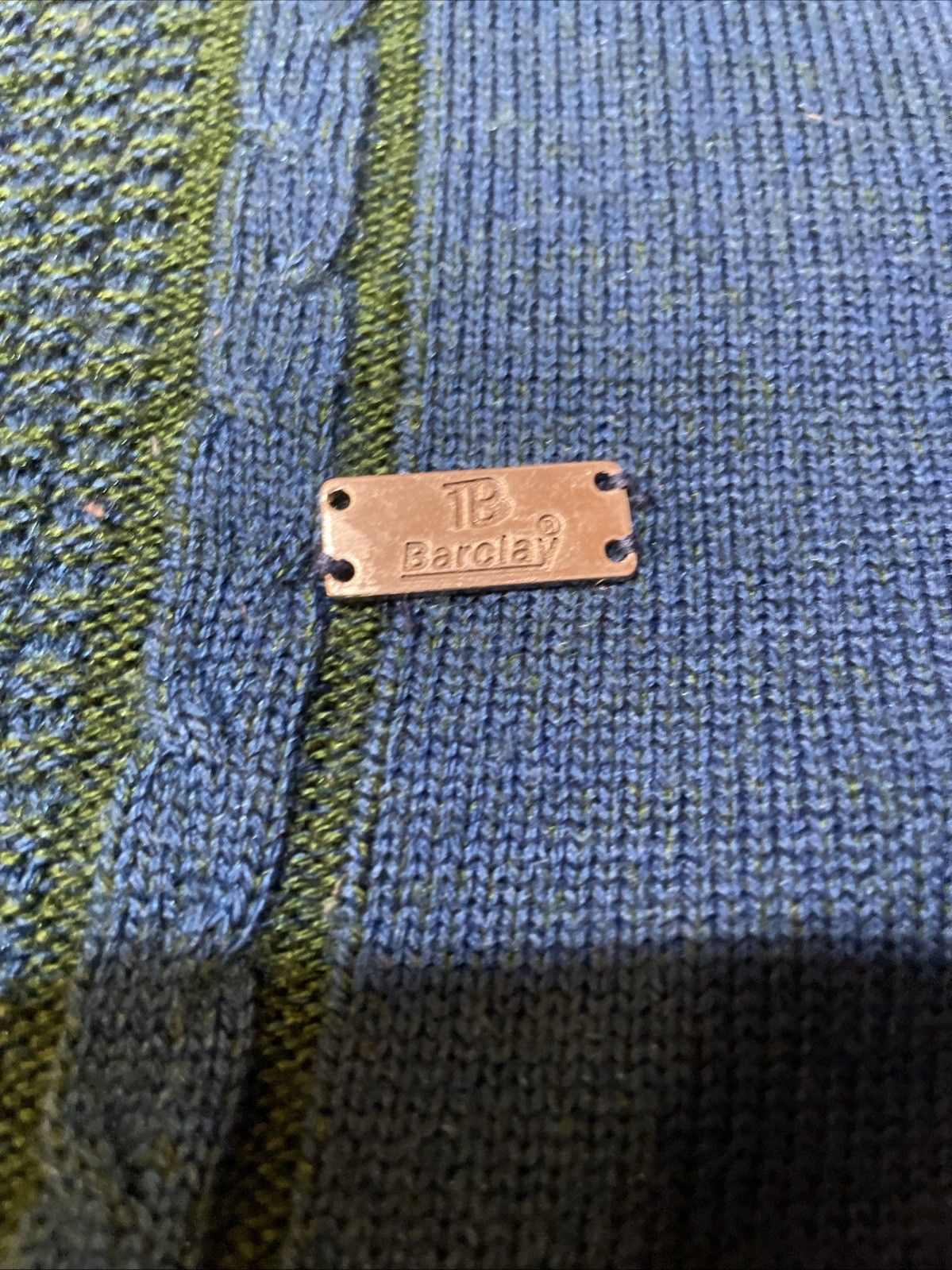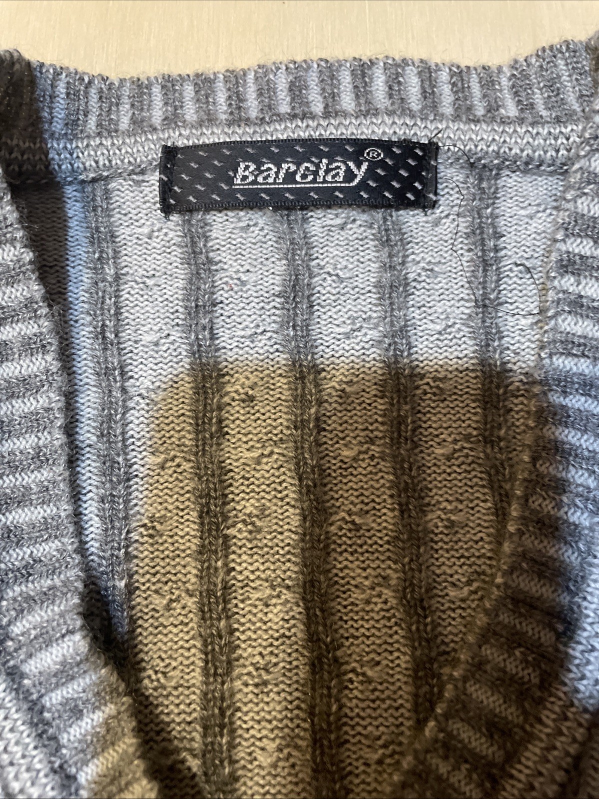 Vintage Barclay V Neck Sweater. Grey, Green, Blue. No Size Tag See Pictures
