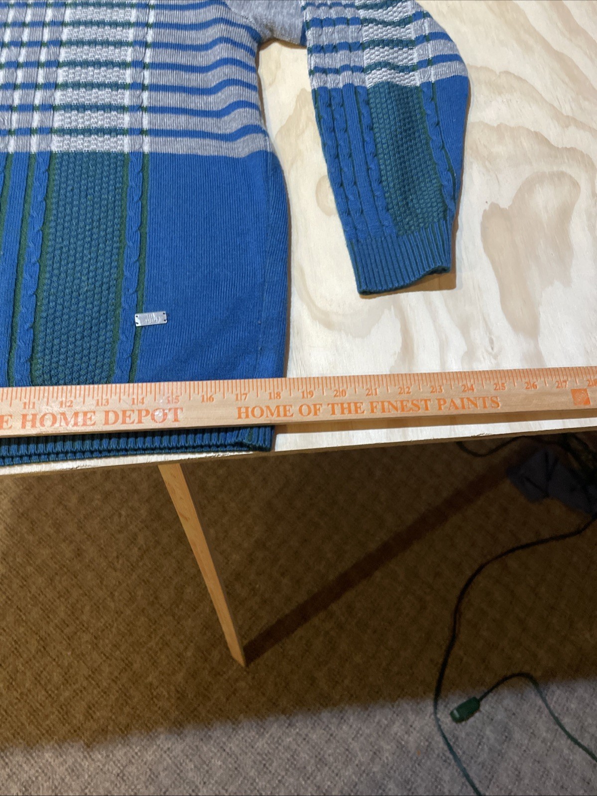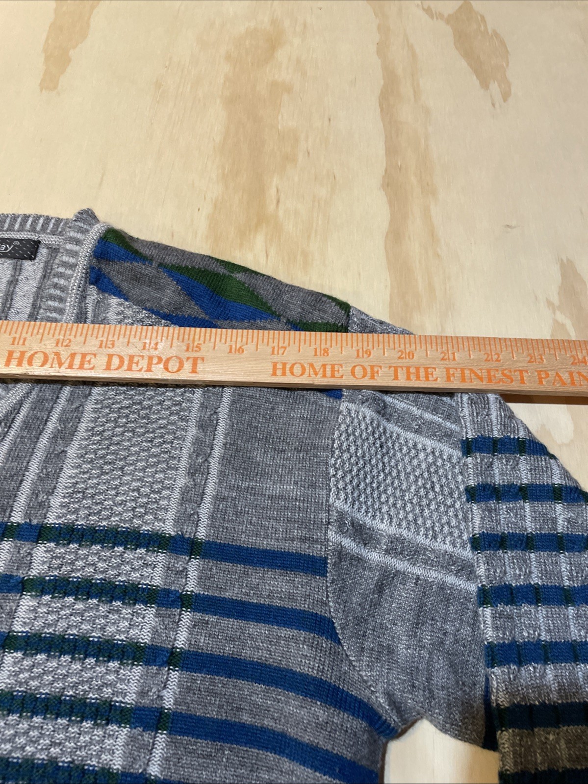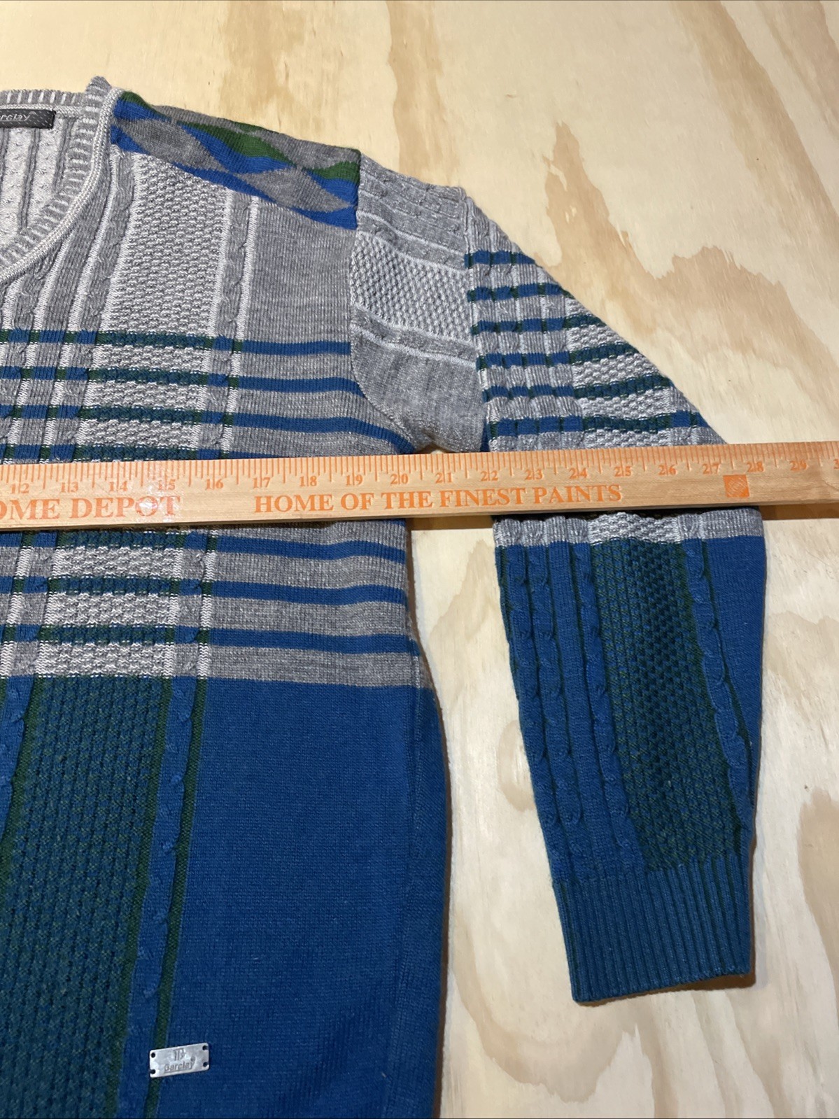 Vintage Barclay V Neck Sweater. Grey, Green, Blue. No Size Tag See Pictures