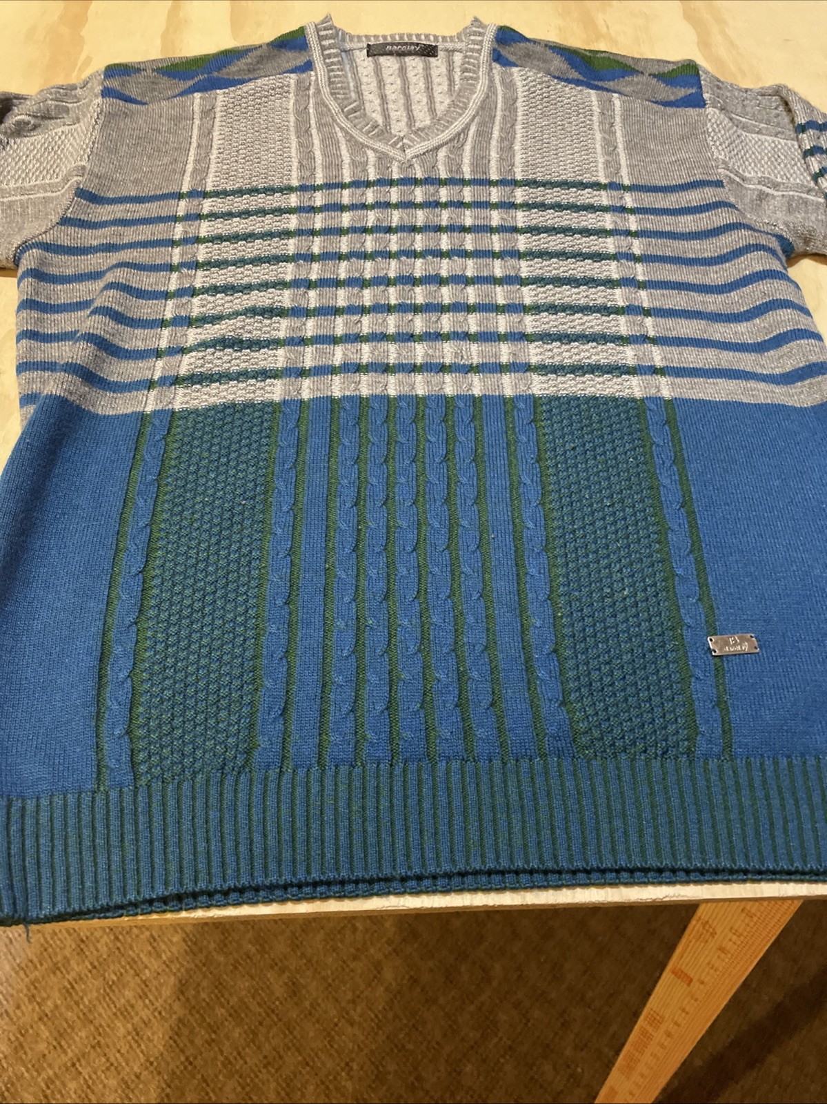 как выглядит Vintage Barclay V Neck Sweater. Grey, Green, Blue. No Size Tag See Pictures фото
