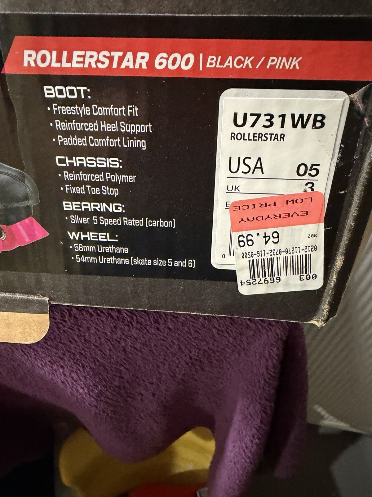 как выглядит Roller Derby Roller Star 600 Womens Roller Skates Black/Pink US Size 5 USED фото