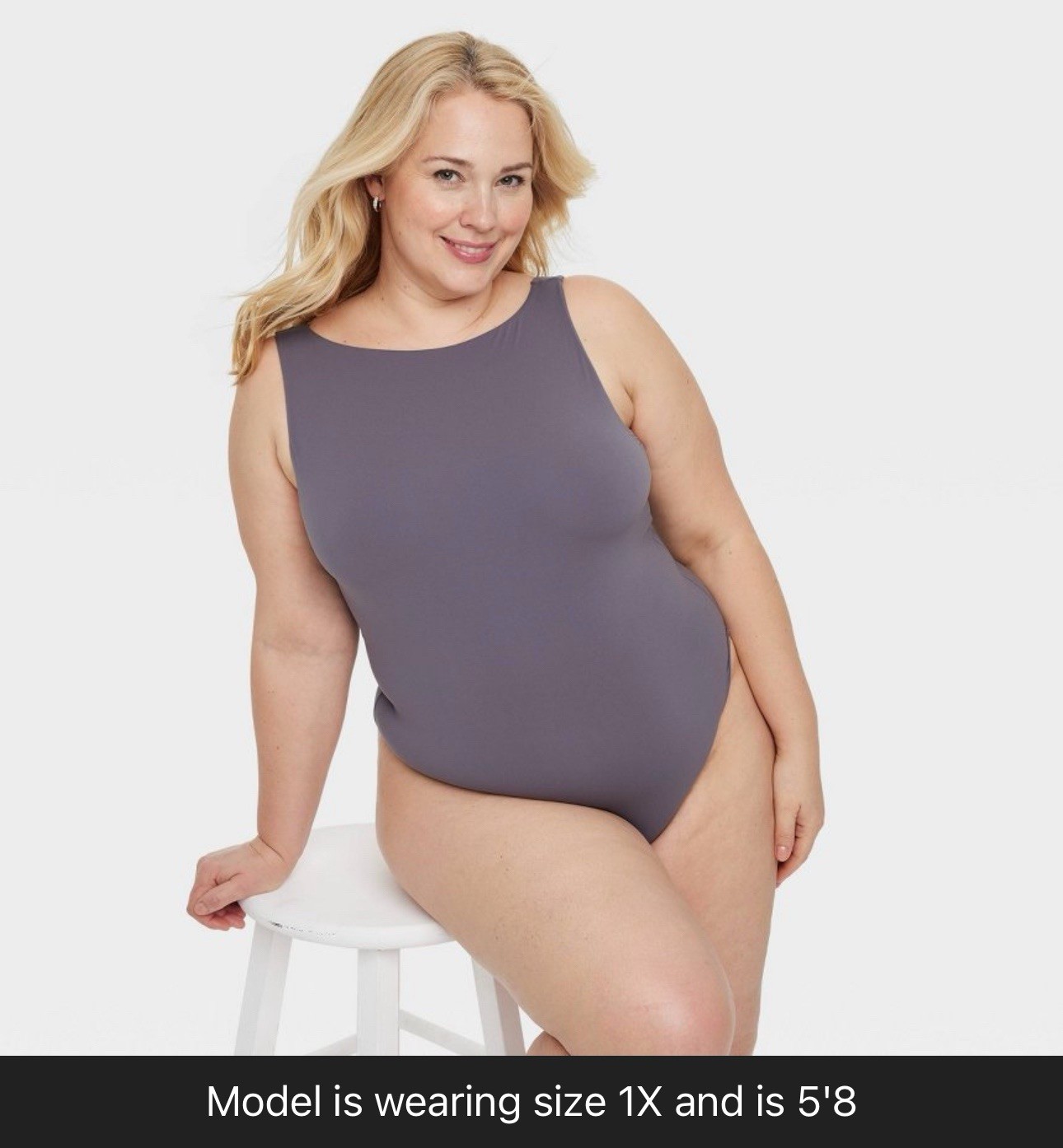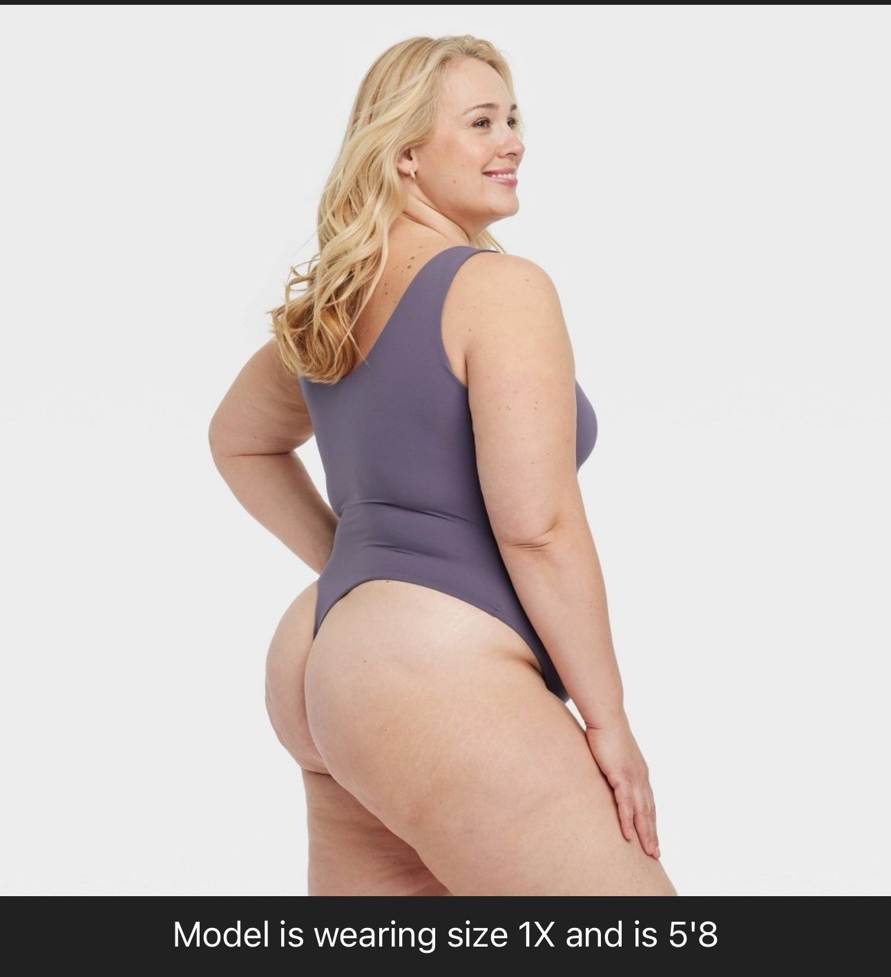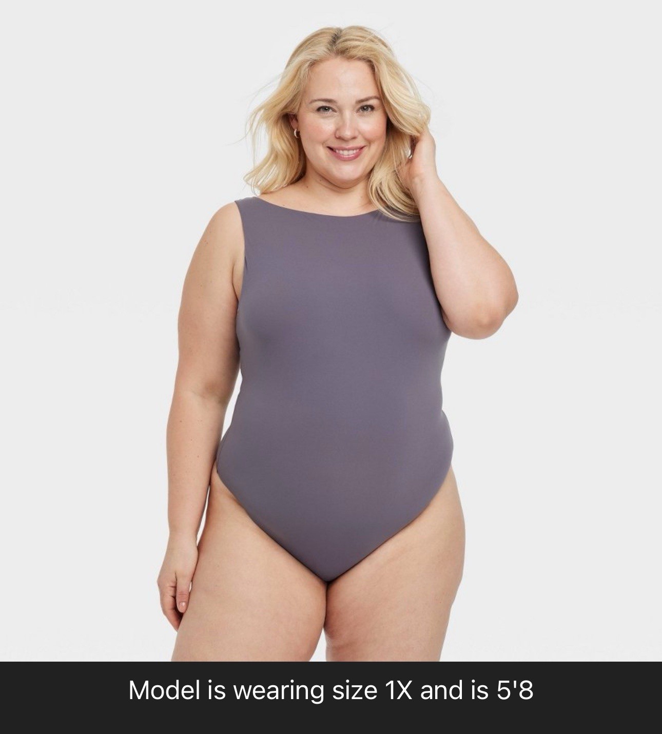 как выглядит Auden Womens Luxe Stretch Boatneck Thong Bodysuit Mauve Gray Size XXL фото