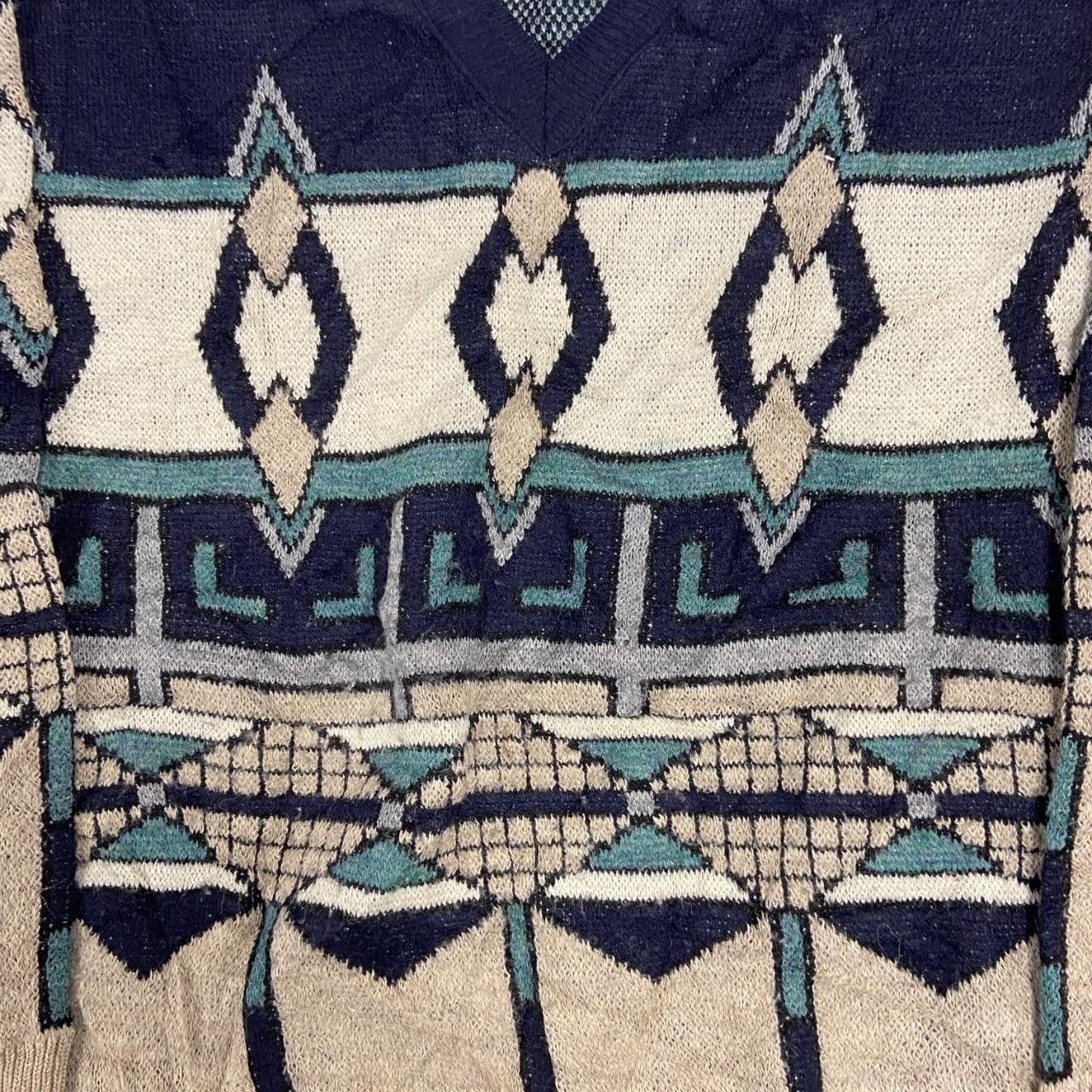 как выглядит Vintage Knitted Jumper Abstract Patterned Grandad V-Neck Knit Sweater Mens L фото