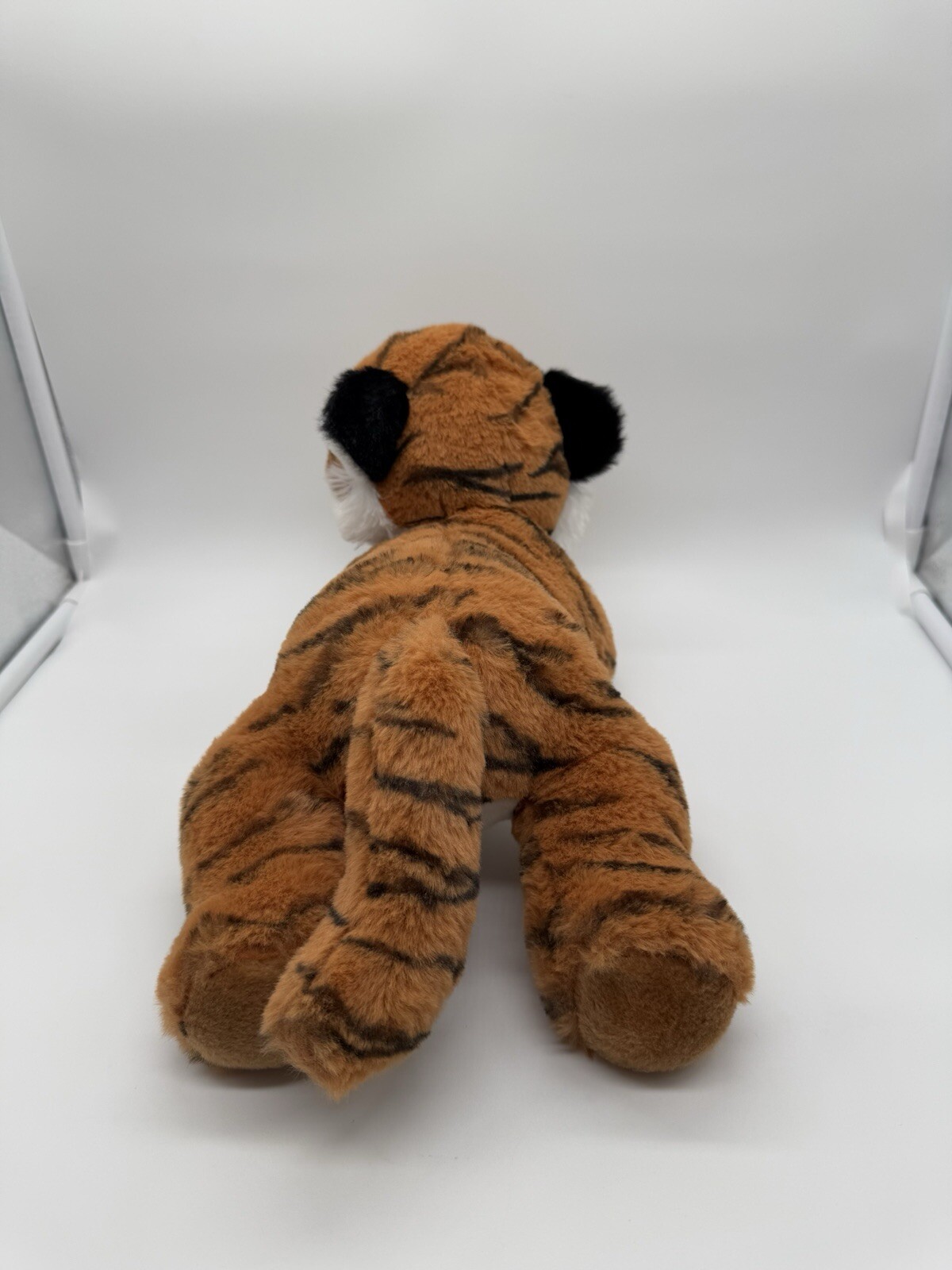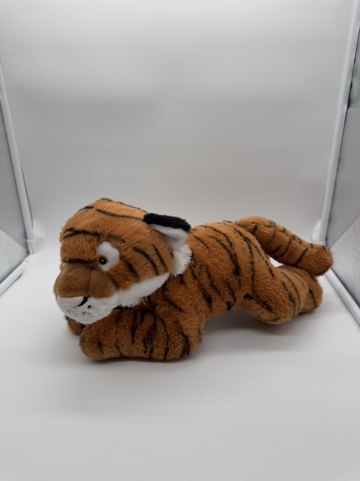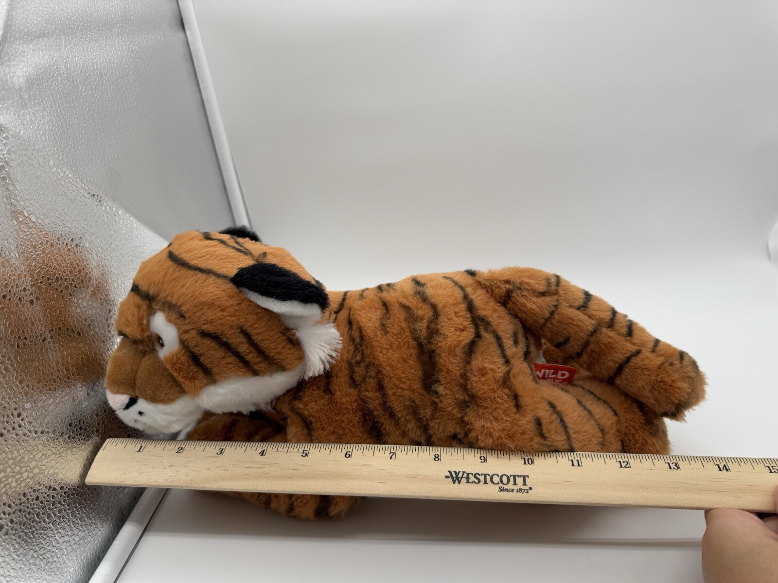 Wild Republic Eco Kids plush tiger lying down soft toy sewn yellow eyes