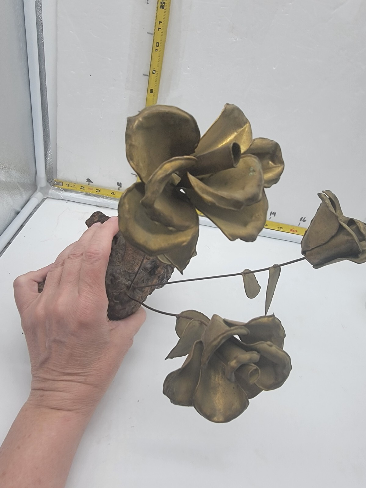 как выглядит VTG 80s METAL ROSES ON MANZANITA WOOD HAND CRAFTED фото