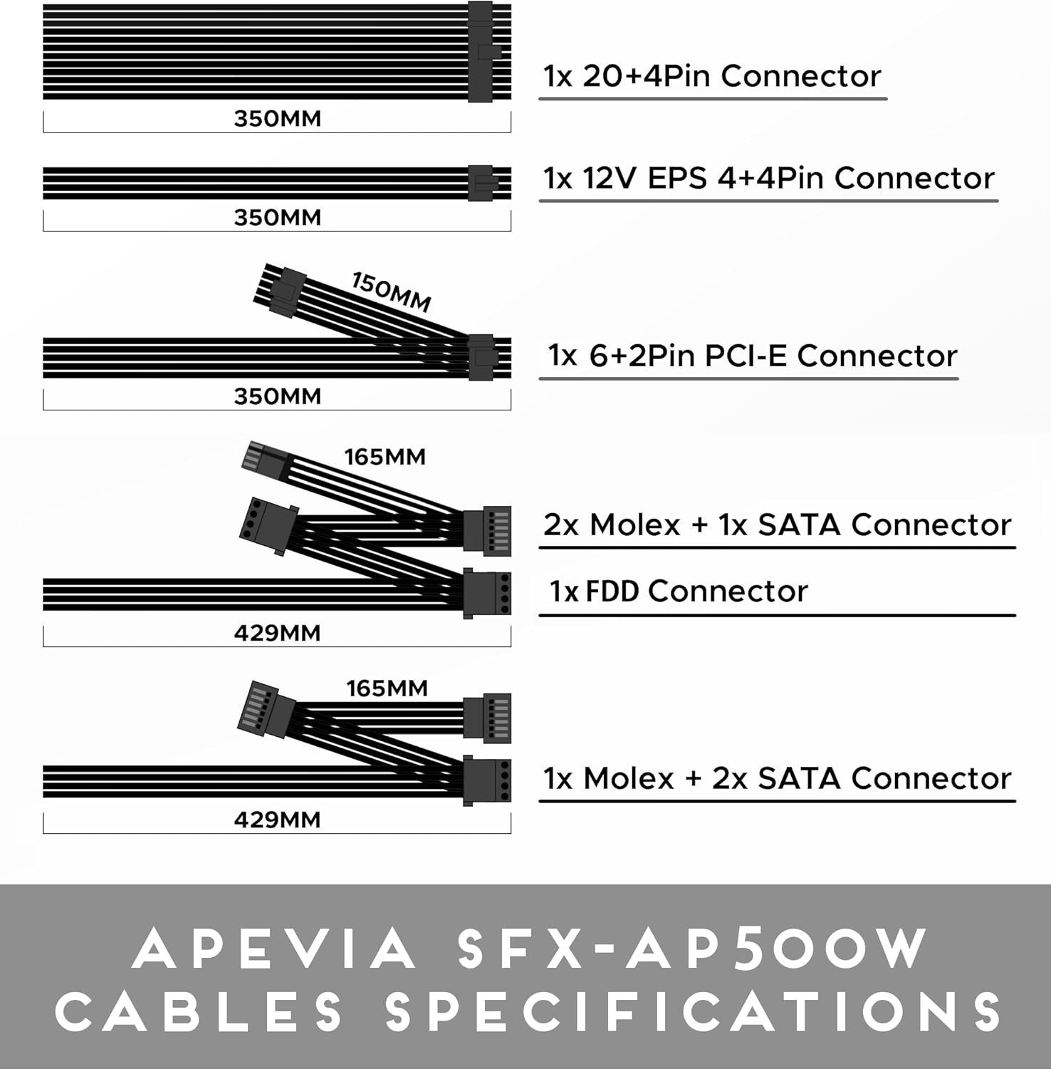 Apevia SFX-AP500W Mini ITX Solution/Micro ATX/SFX 500W Power Supply, 8 pin CPU