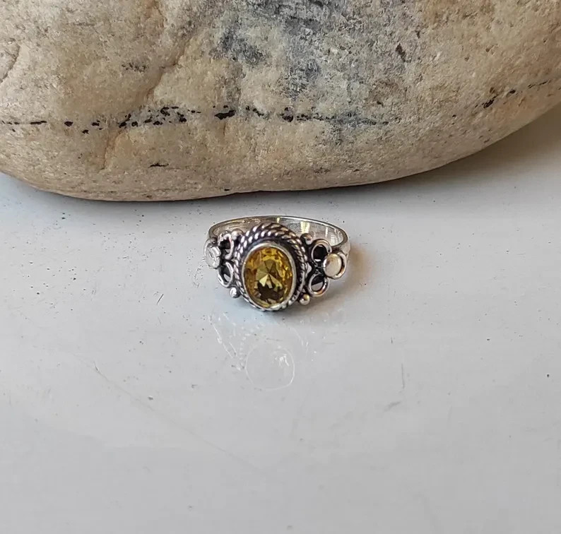 Citrine Gemstone Ring 925 Sterling Silver Statement Handmade All Ring Size R07