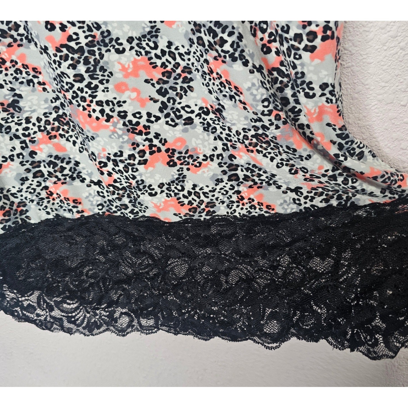 Delta Burke Womens 2X Nightgown Chemise Leopard Black Lace Leopard Lingerie PJ