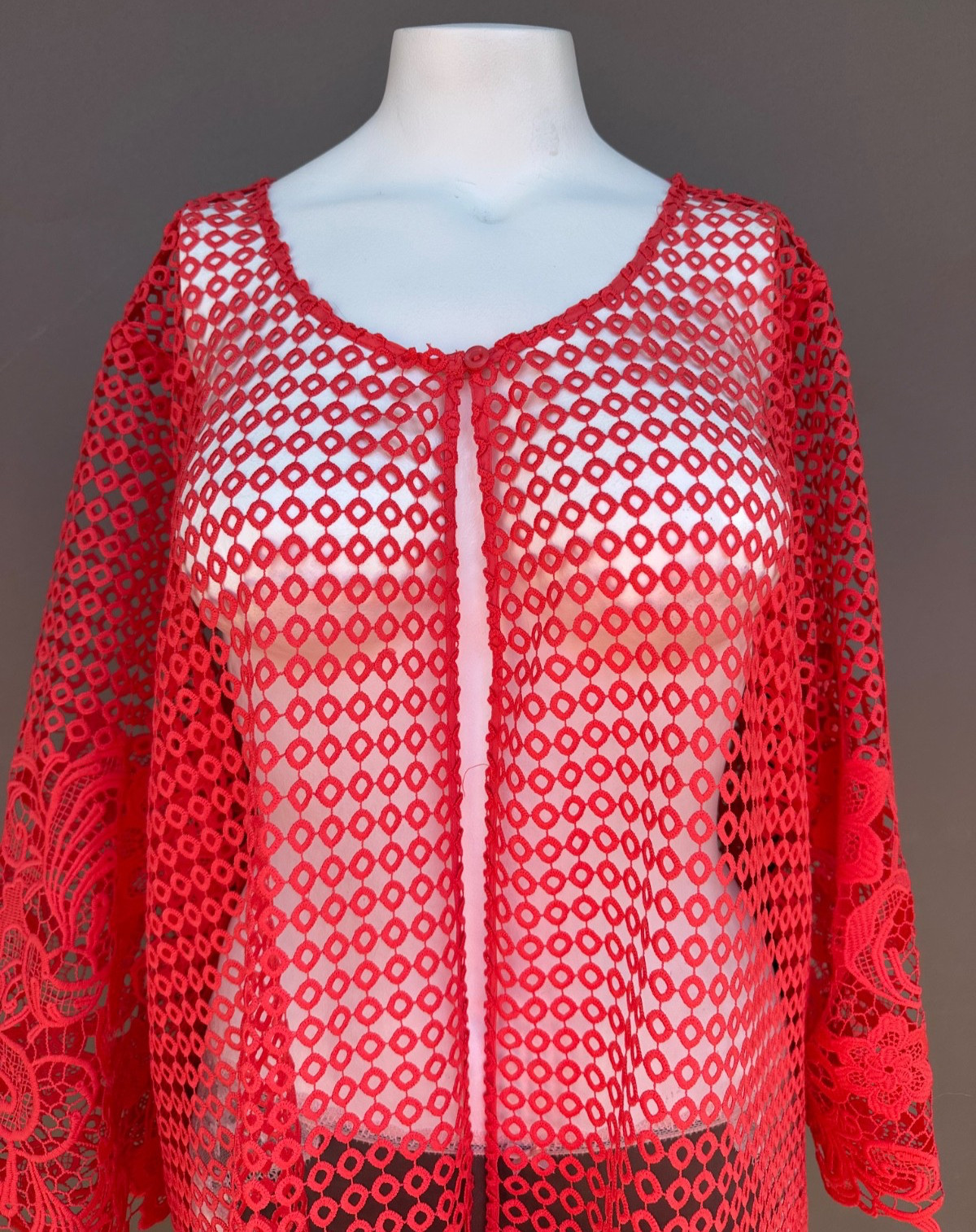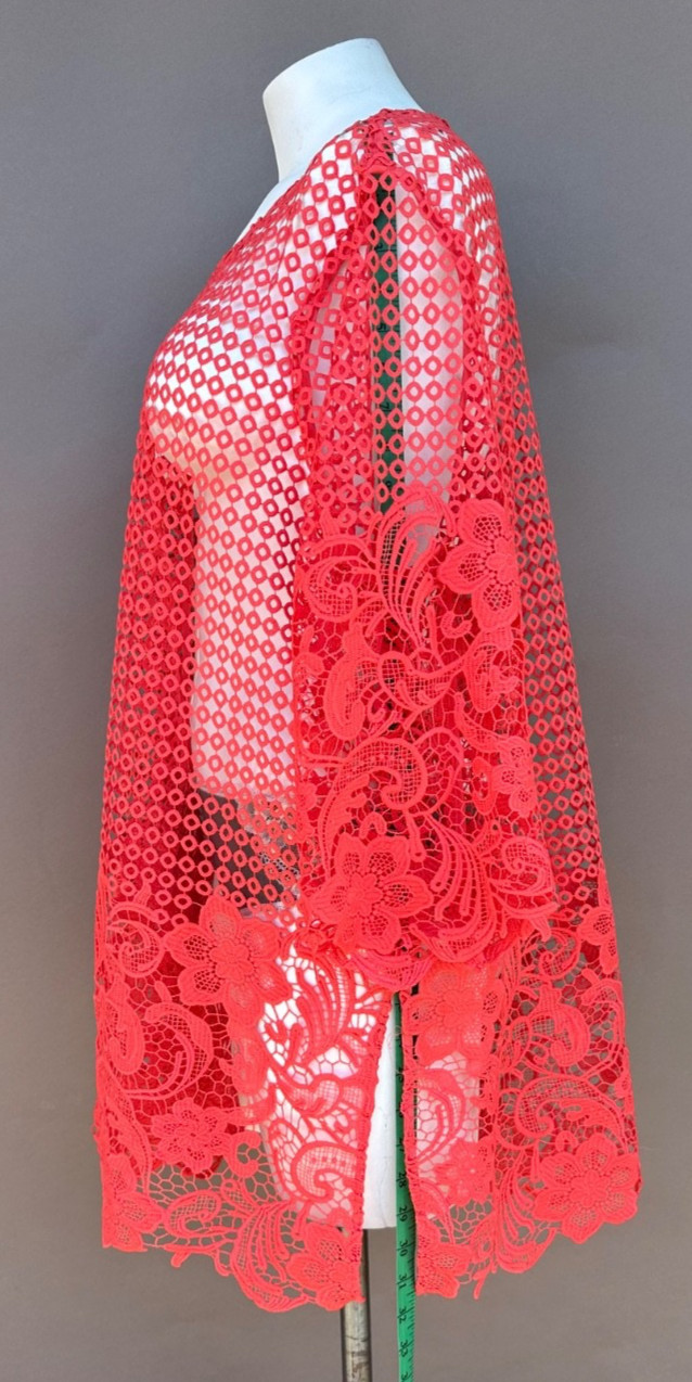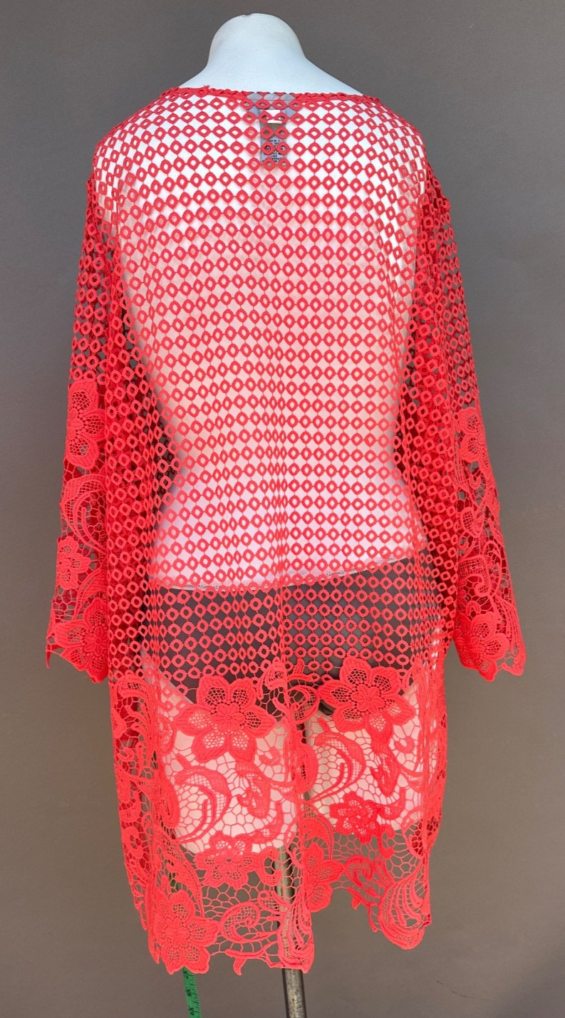 Catherines Open Crochet Knit Cardigan Duster Size 1X Coral Long Sleeves Kimono
