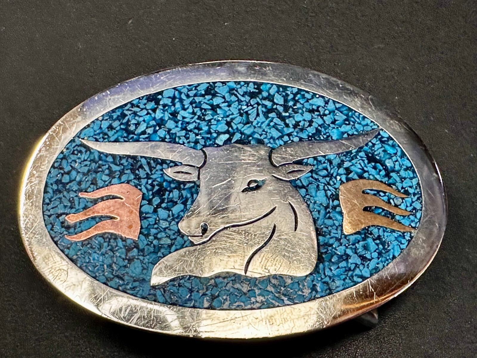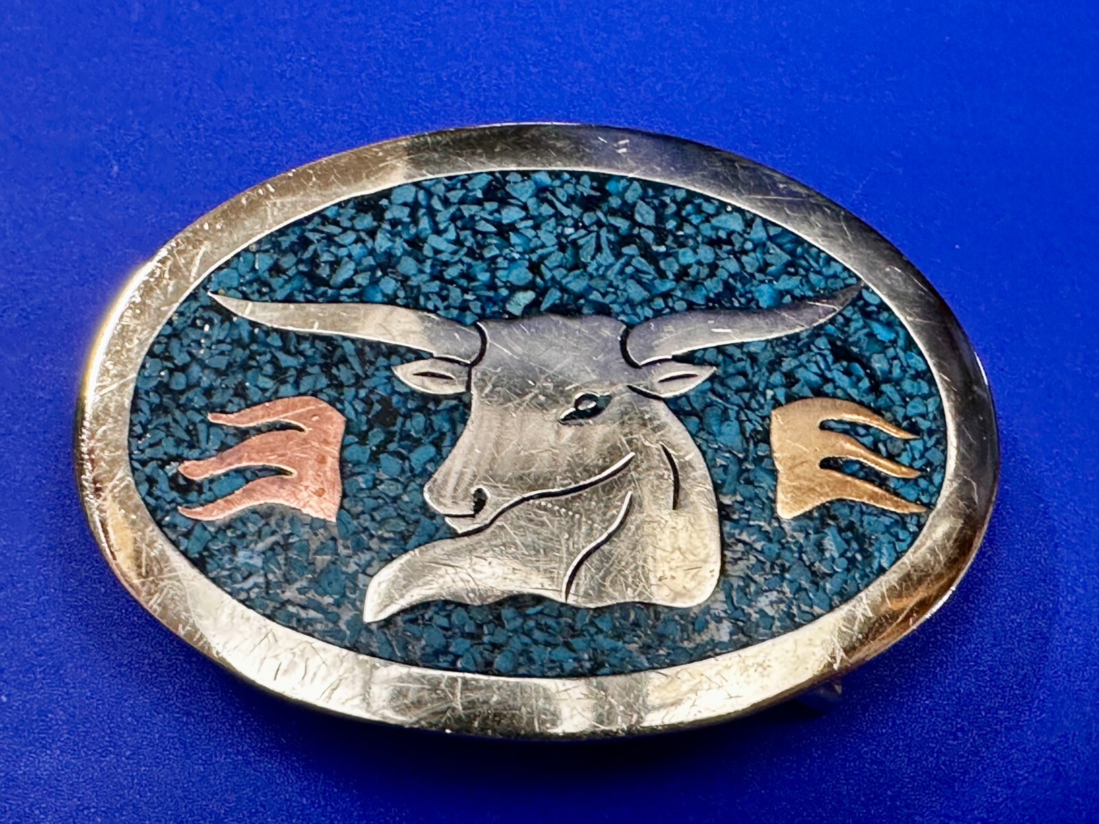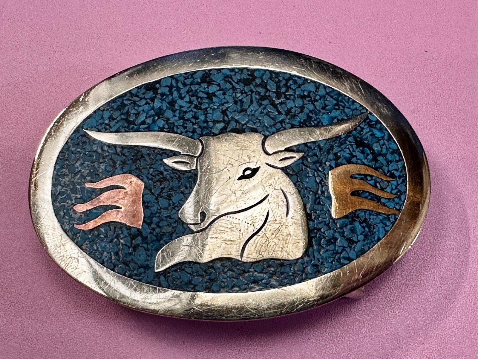 Longhorn Bull Steer Head Turquoise Inlay SouthWestern Belt Buckle Made in Mexico