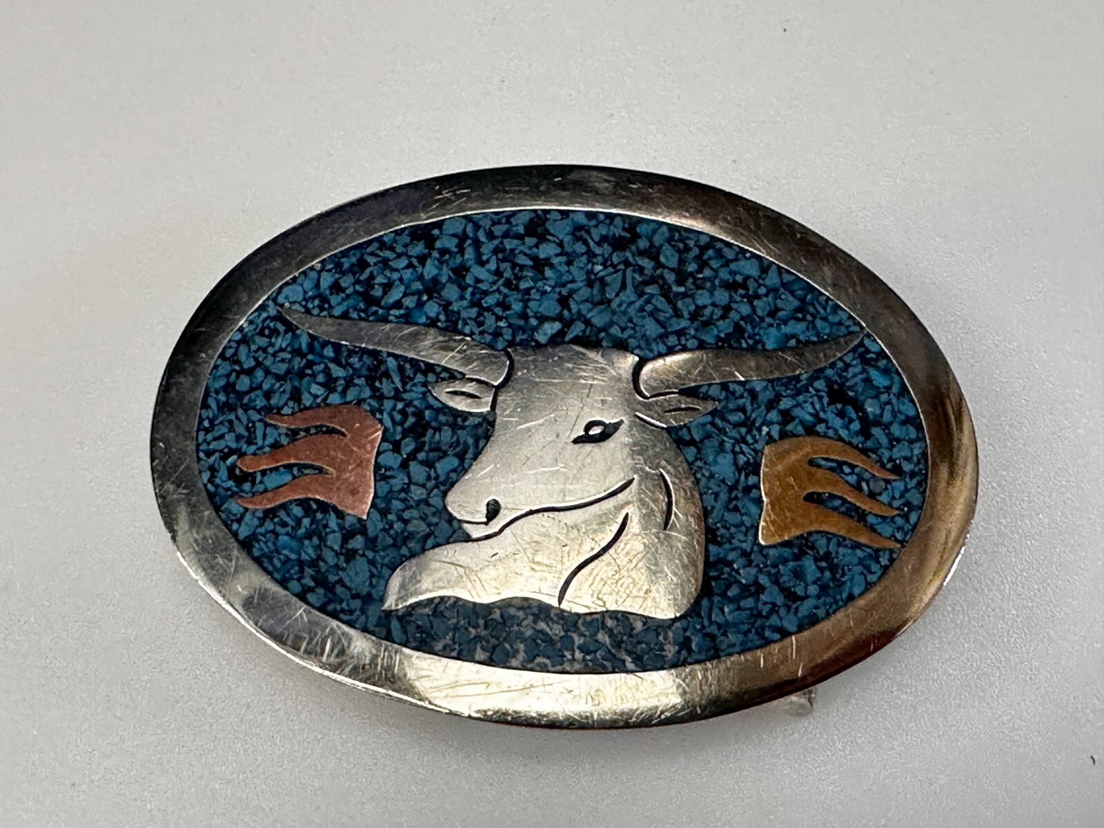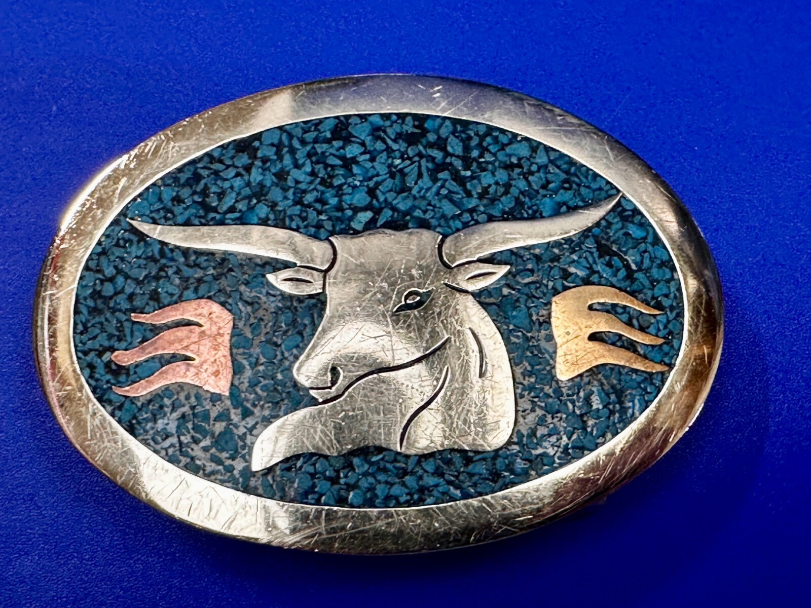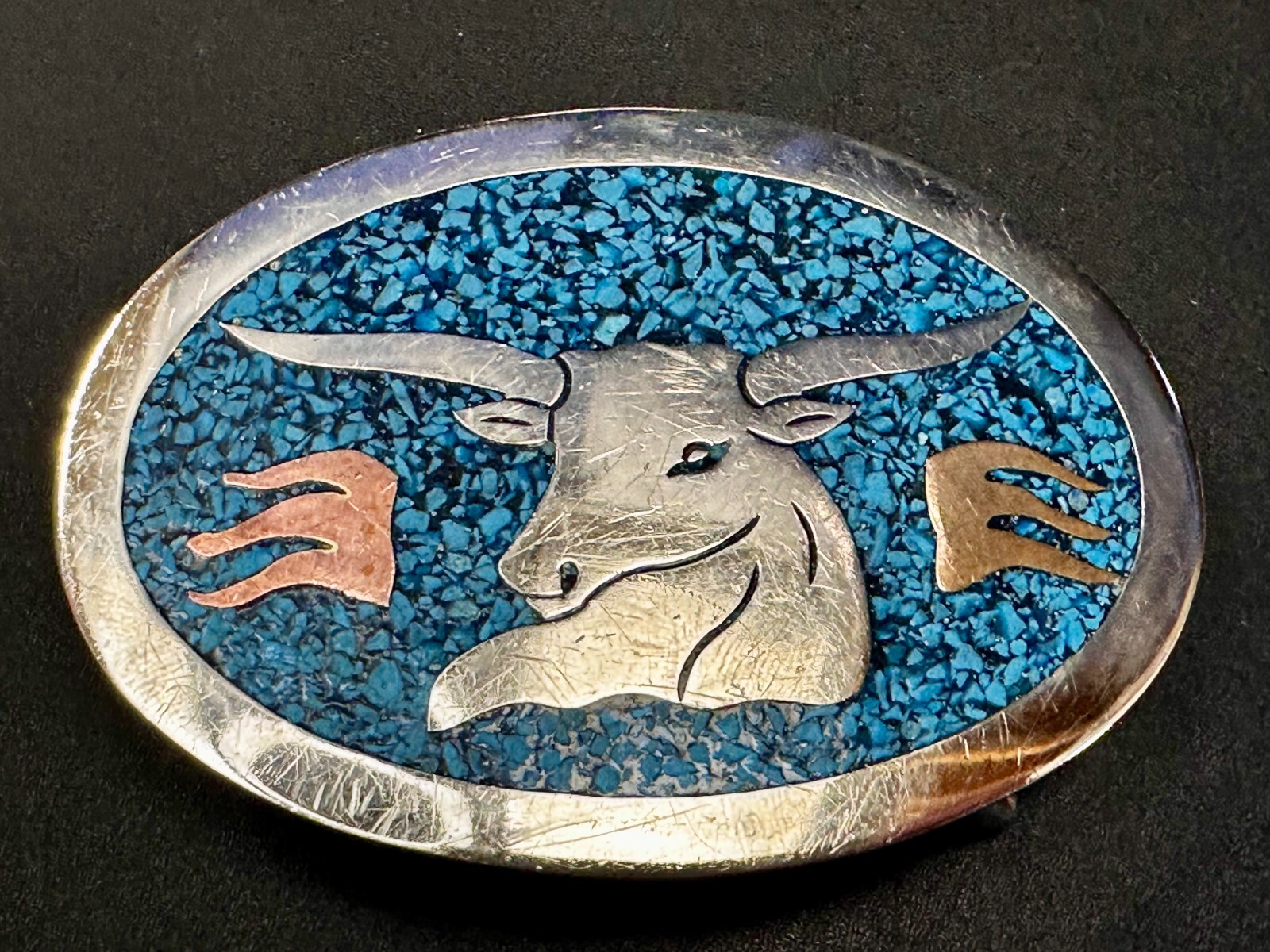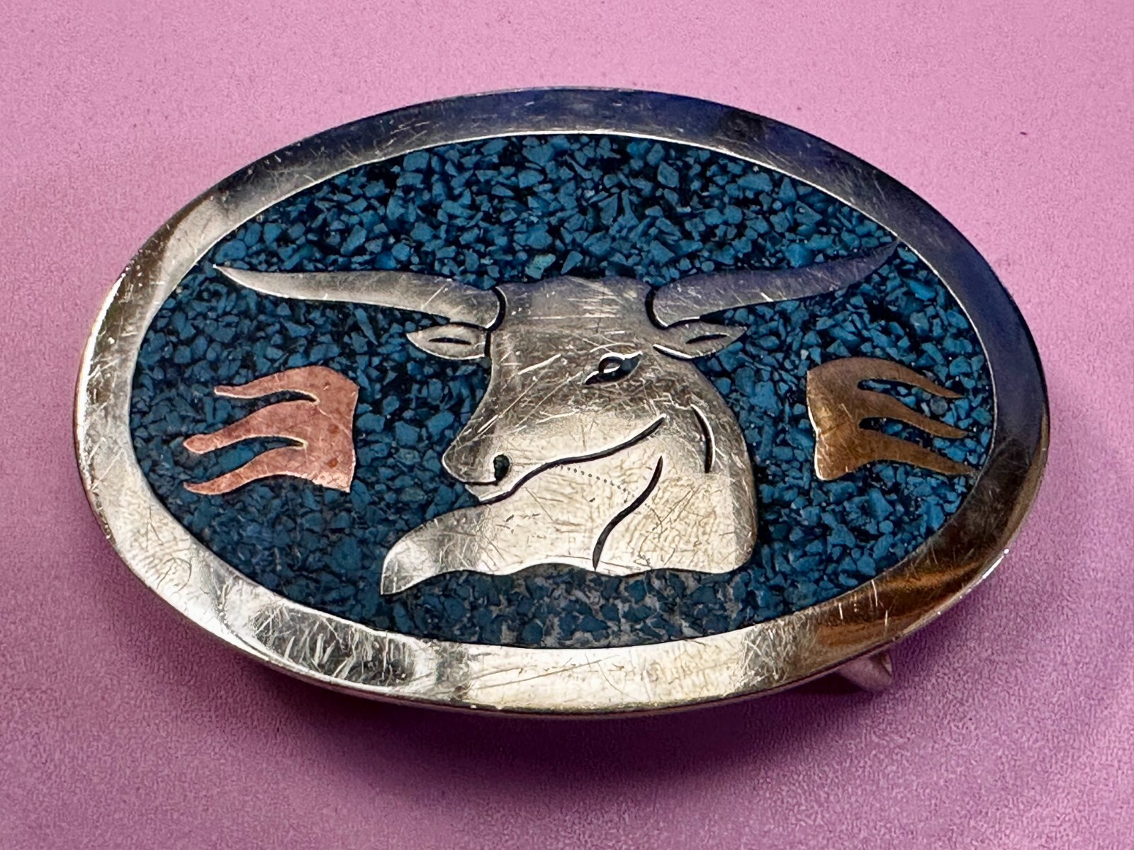 Longhorn Bull Steer Head Turquoise Inlay SouthWestern Belt Buckle Made in Mexico