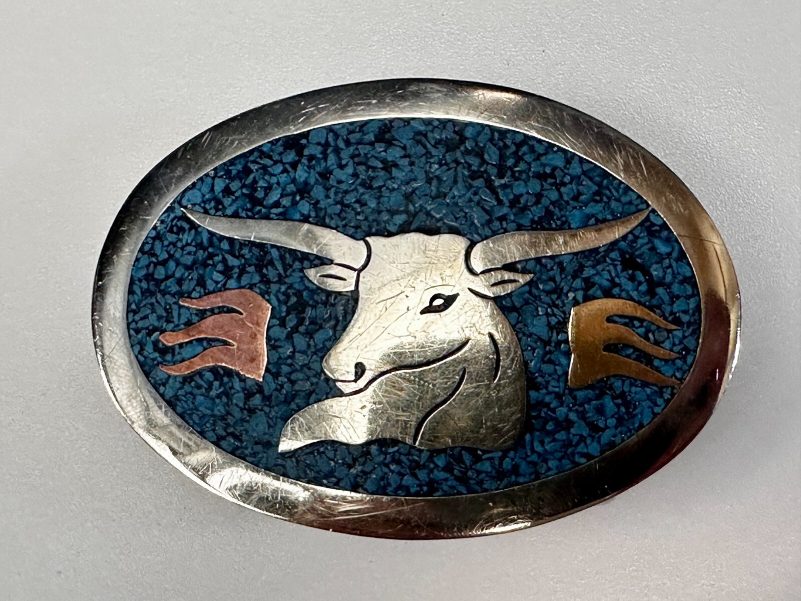 как выглядит Longhorn Bull Steer Head Turquoise Inlay SouthWestern Belt Buckle Made in Mexico фото