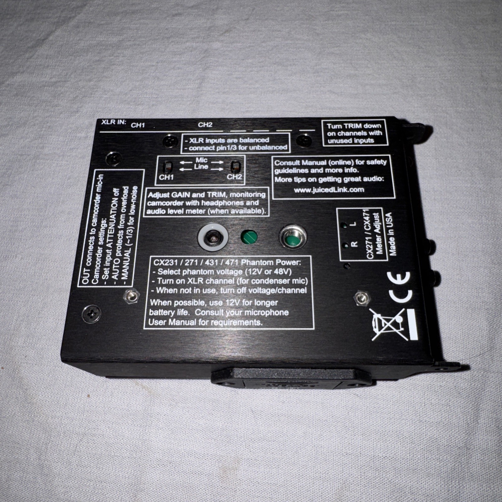 JuicedLink CX231 Camera Mountable Mixer / Preamplifier