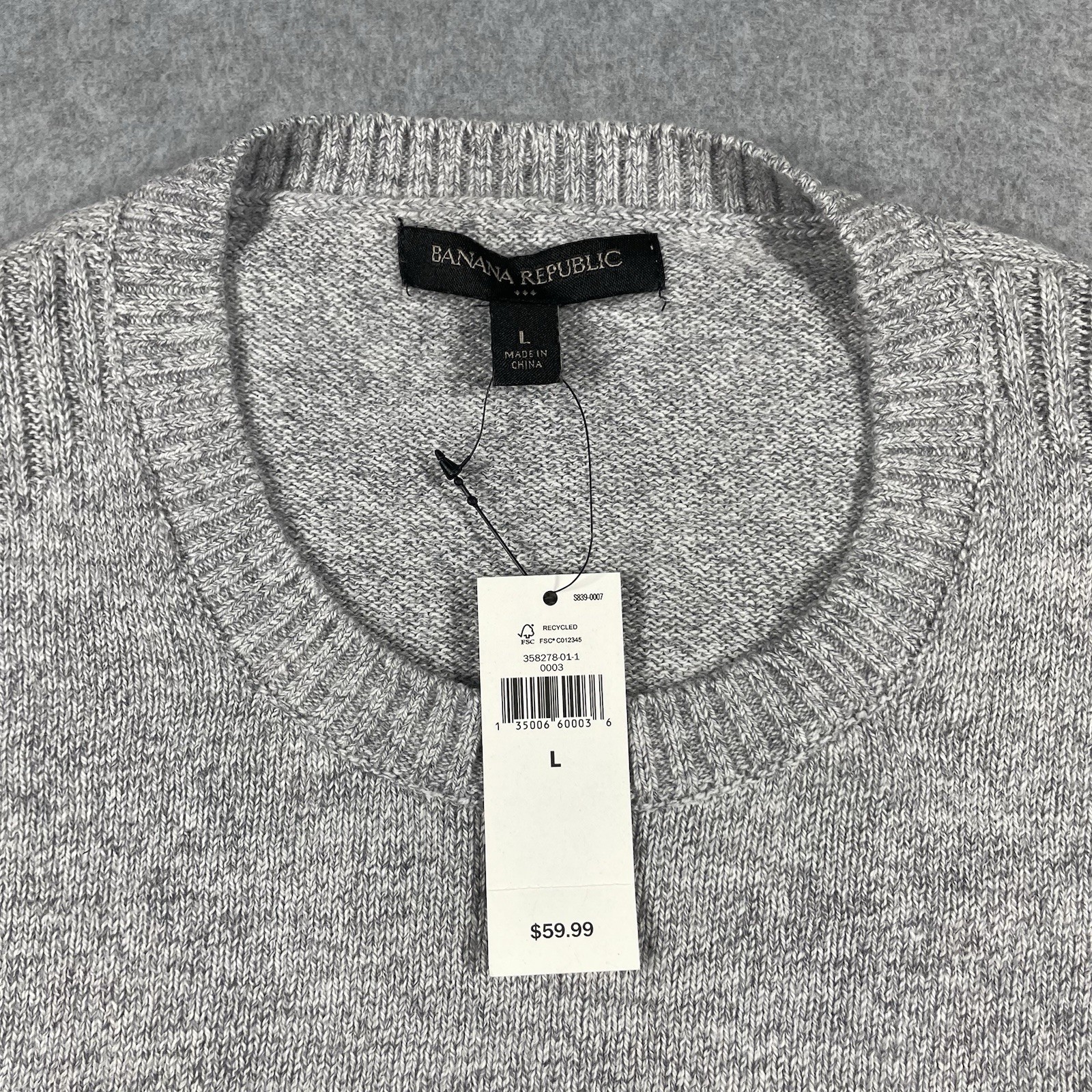как выглядит Banana Republic knit crew neck pullover mens large gray cotton nylon wool blend фото