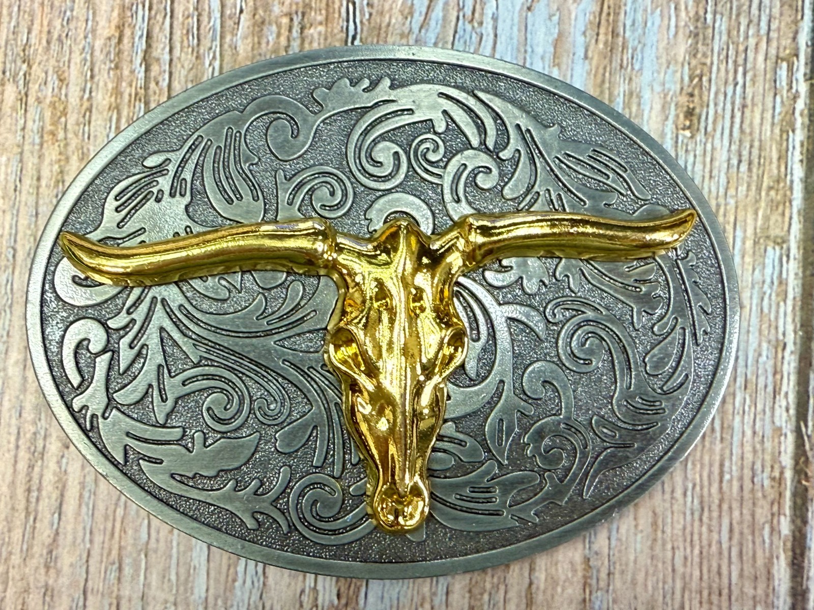 Longhorn Cow Bull Head Steer Ornate Two Tone Western Cowboy Large Belt Buckle