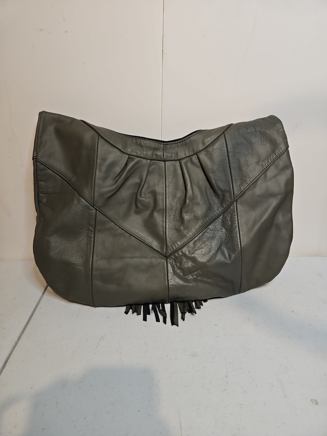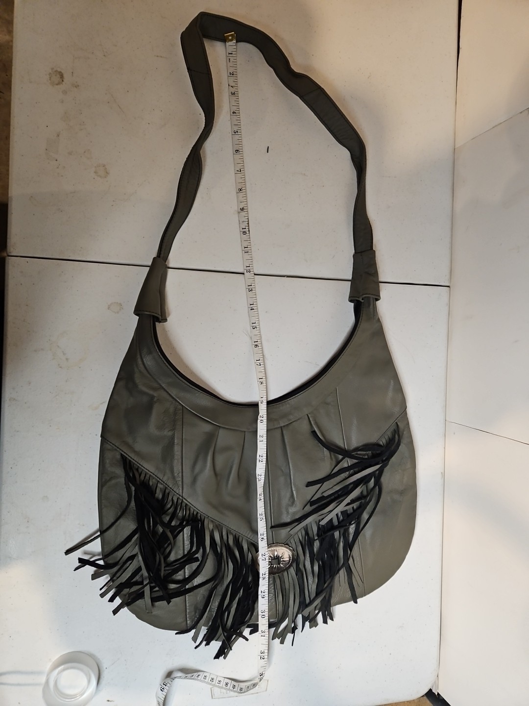 как выглядит Genuine Leather Western Crossbody Fringe Concho Bag Gray фото
