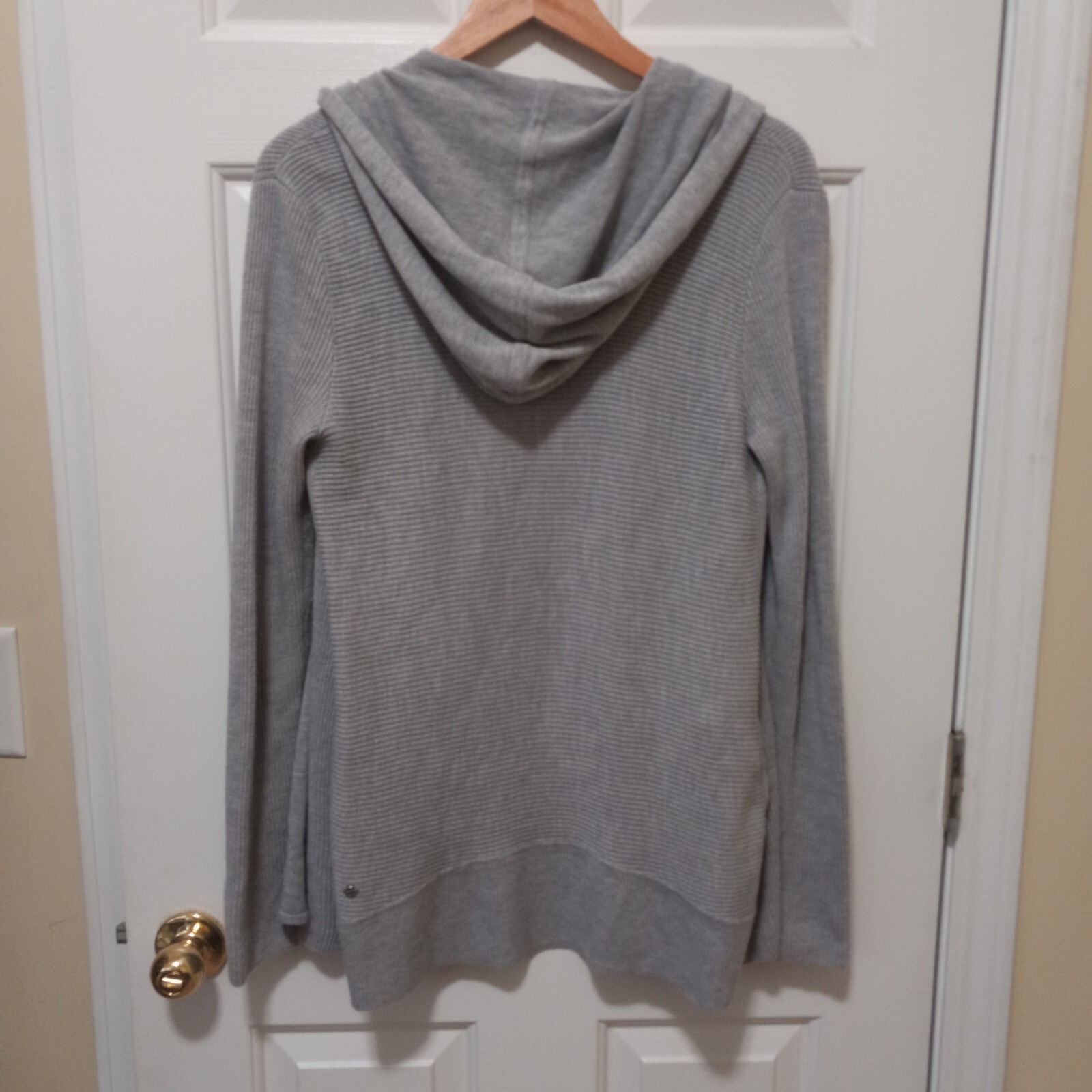 как выглядит LULULEMON Womens Gray Open Front Hooded Pockets Cardigan Merino Wool Blend 8 фото