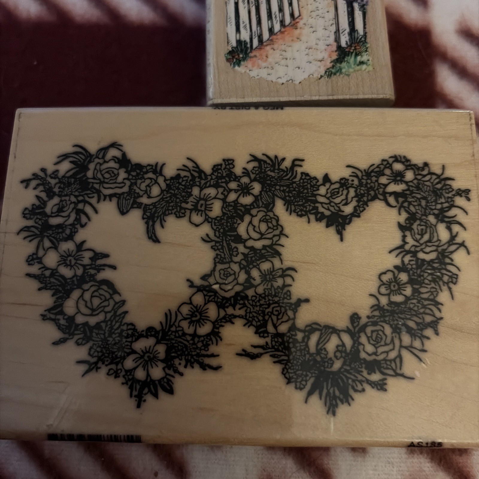 как выглядит Floral Hearts Valentine Rubber Stamps Wood Mounted Cottage Fence Roses фото