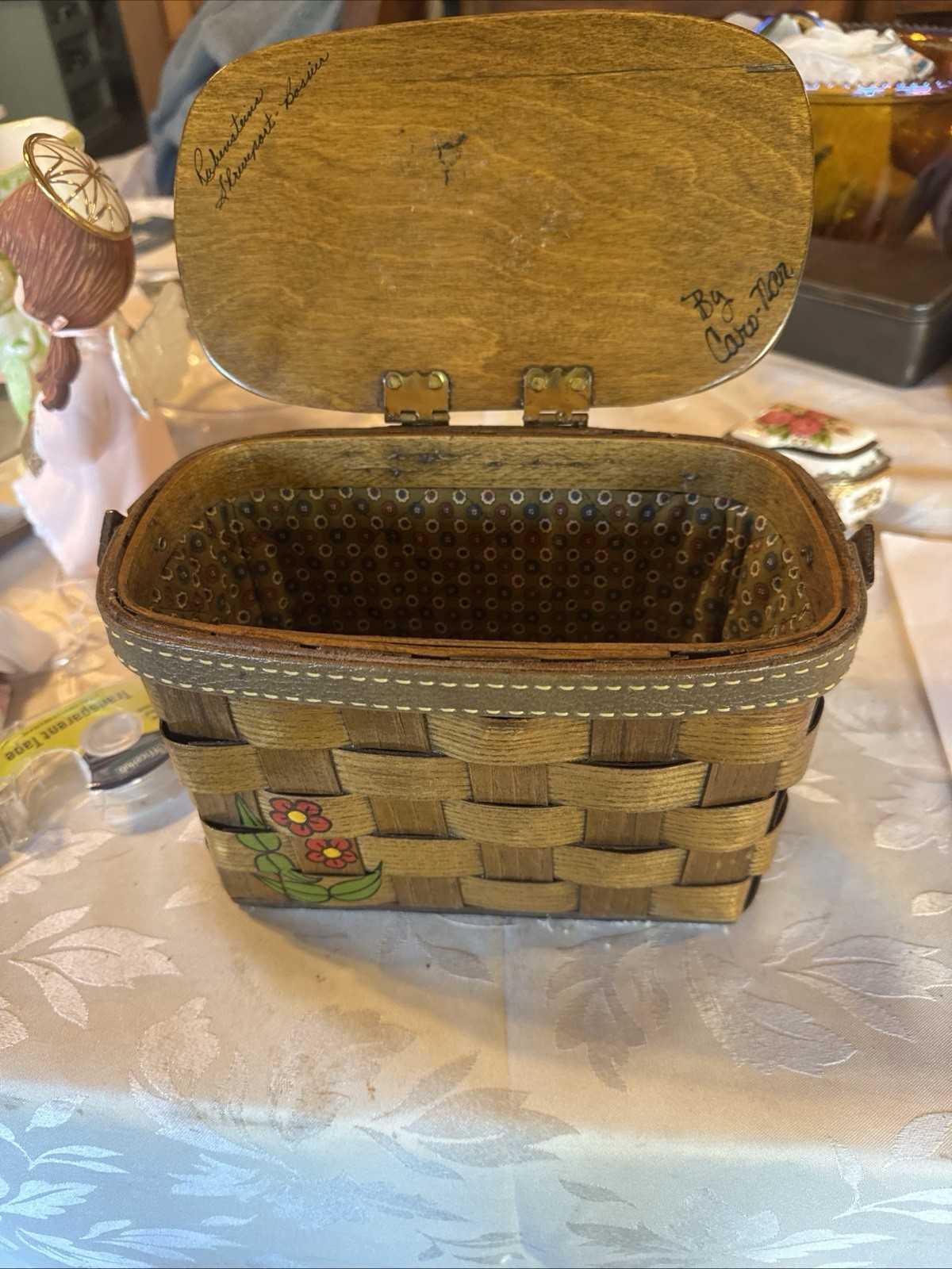 как выглядит Caro Nan Bucket Box Floral Purse Woven Hand Painted Signed Vintage Made In USA.. фото