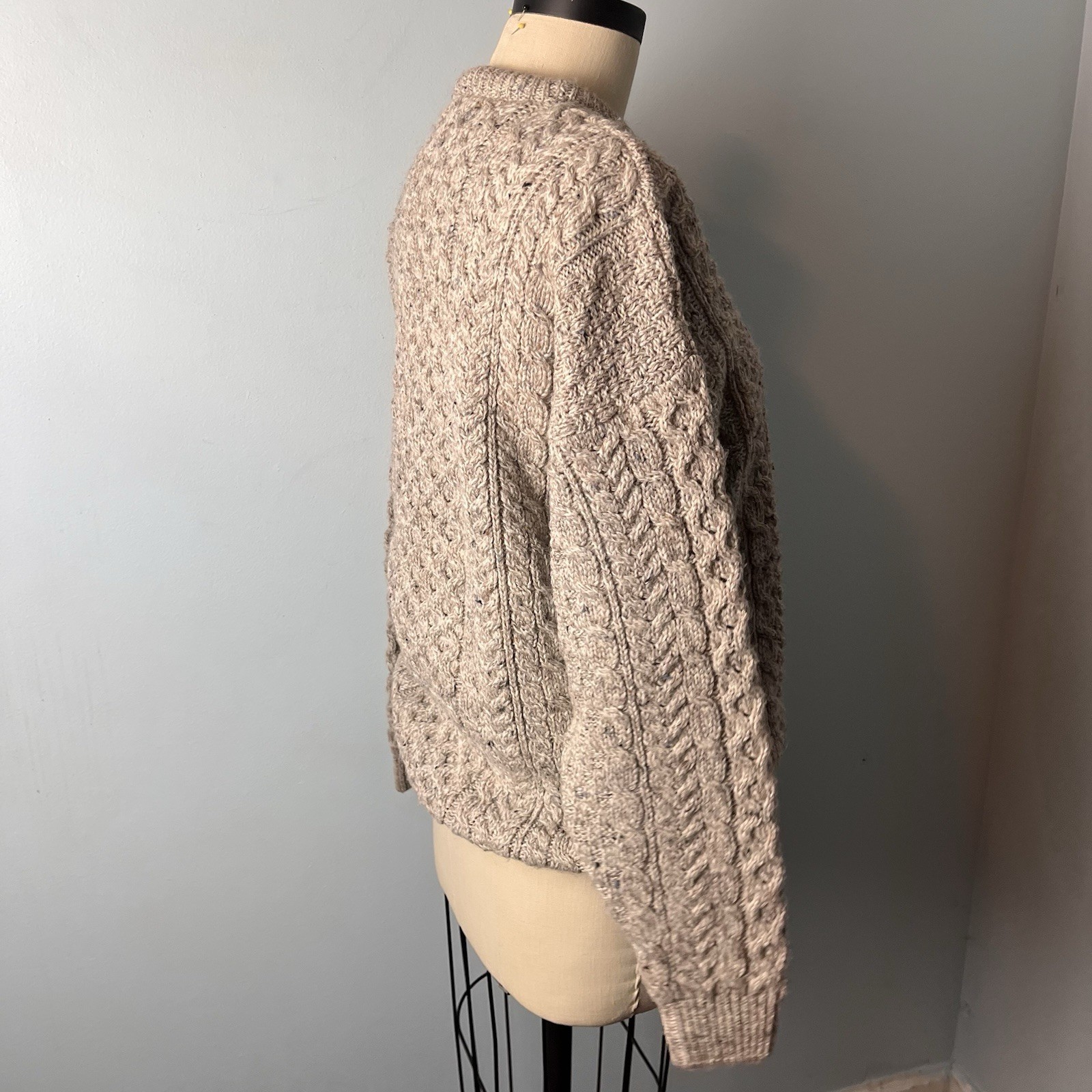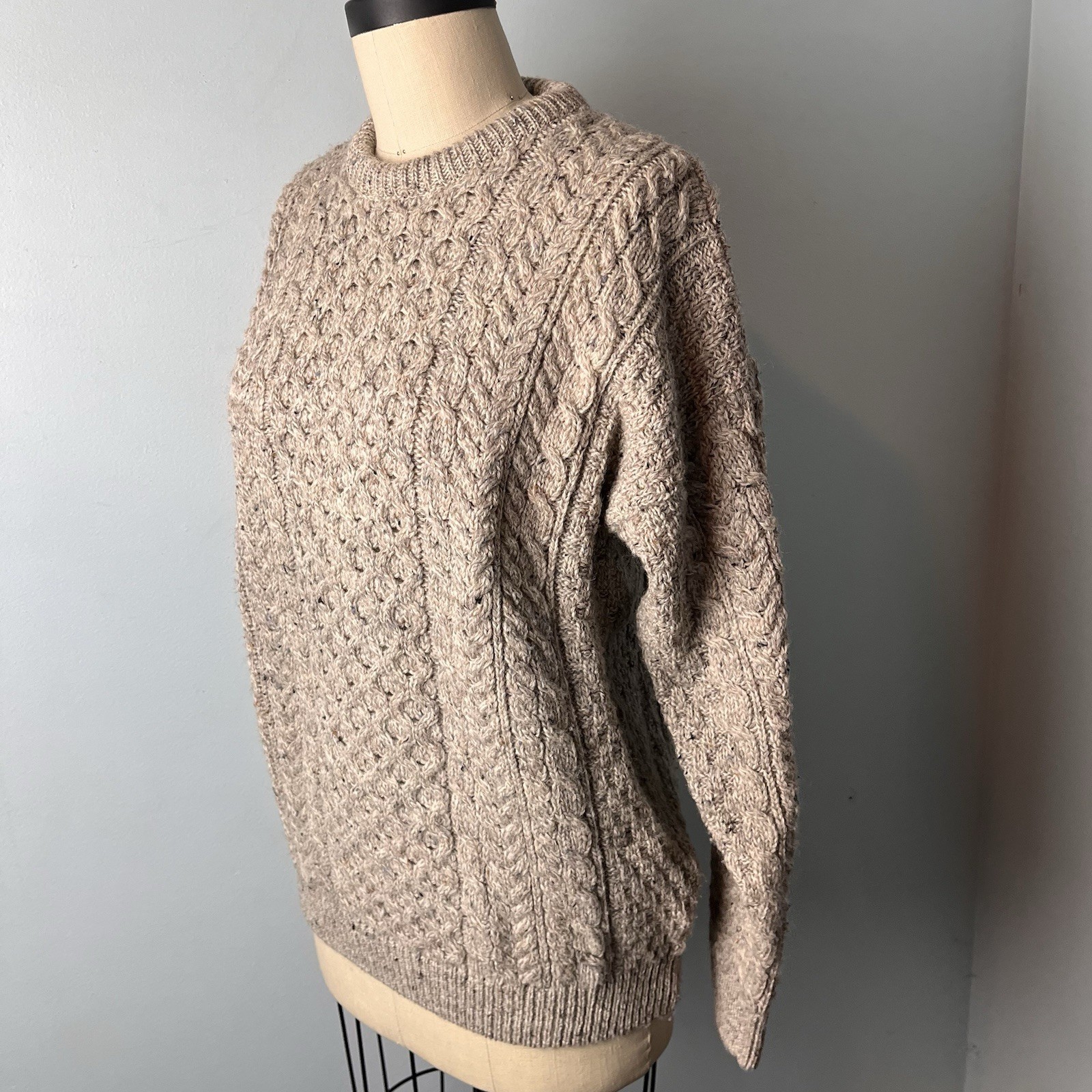 Carraig Donn Sweater Large Cream Beige Cable Knit Fisherman Wool Ireland Vtg