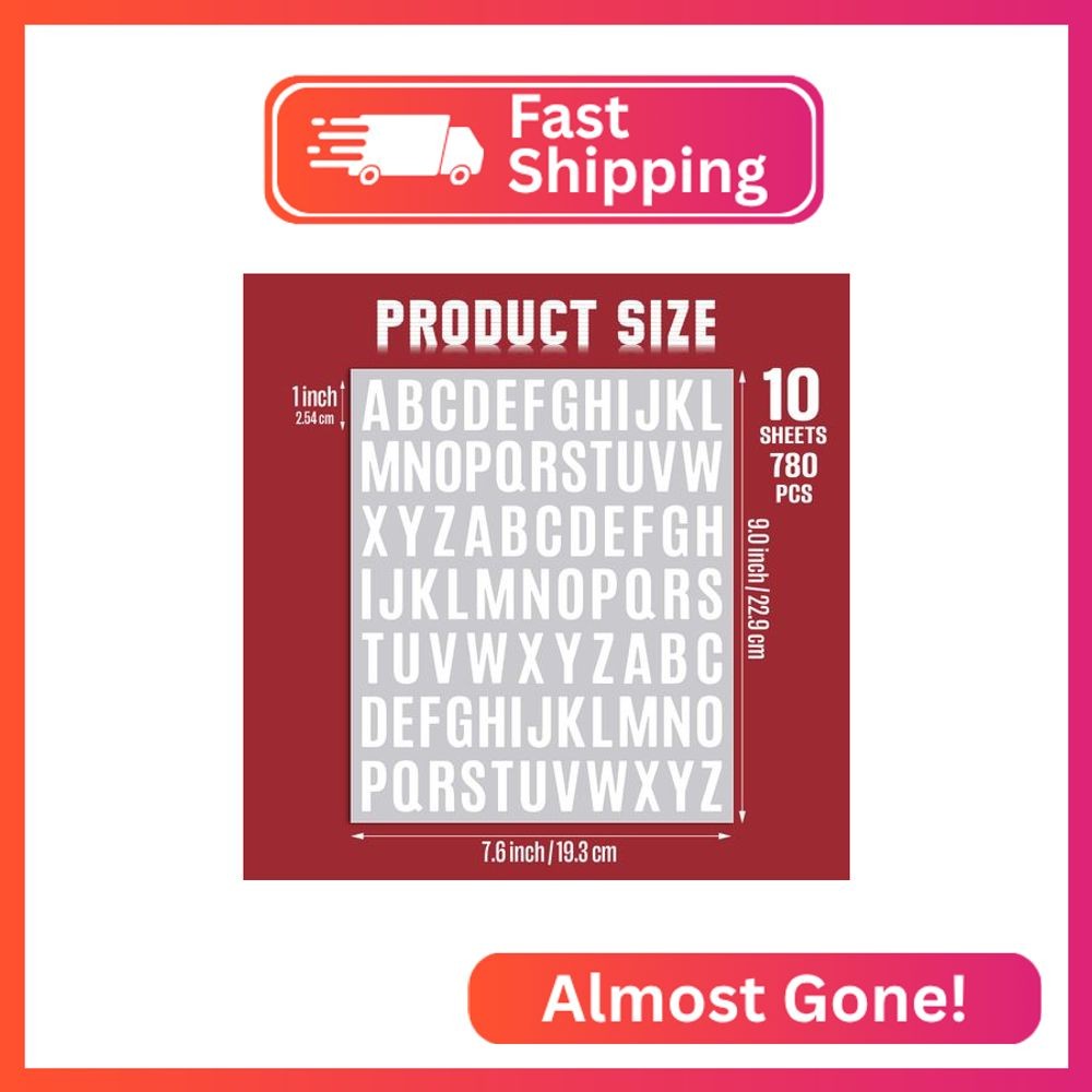10 Sheet Small Letter Stickers - 1 Inch White Vinyl Self Adhesive Alphabet Stick