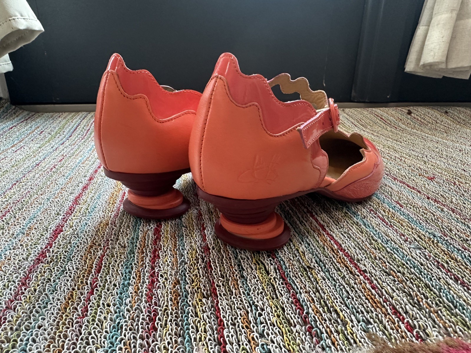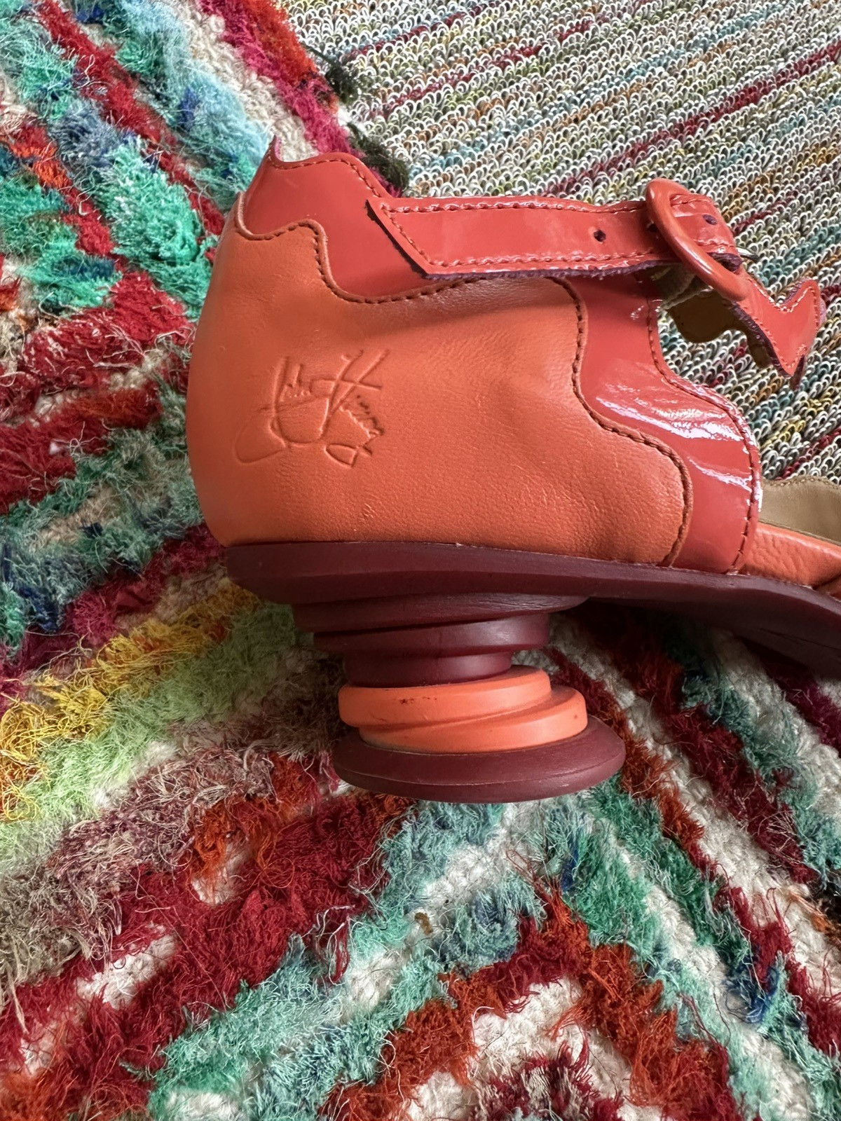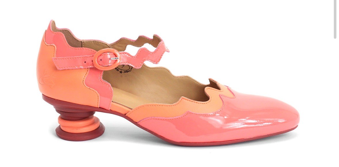 как выглядит Fluevog EXCELLENT Fairway Trivialis pink/coral wavy patent leather Mary Jane - 8 фото