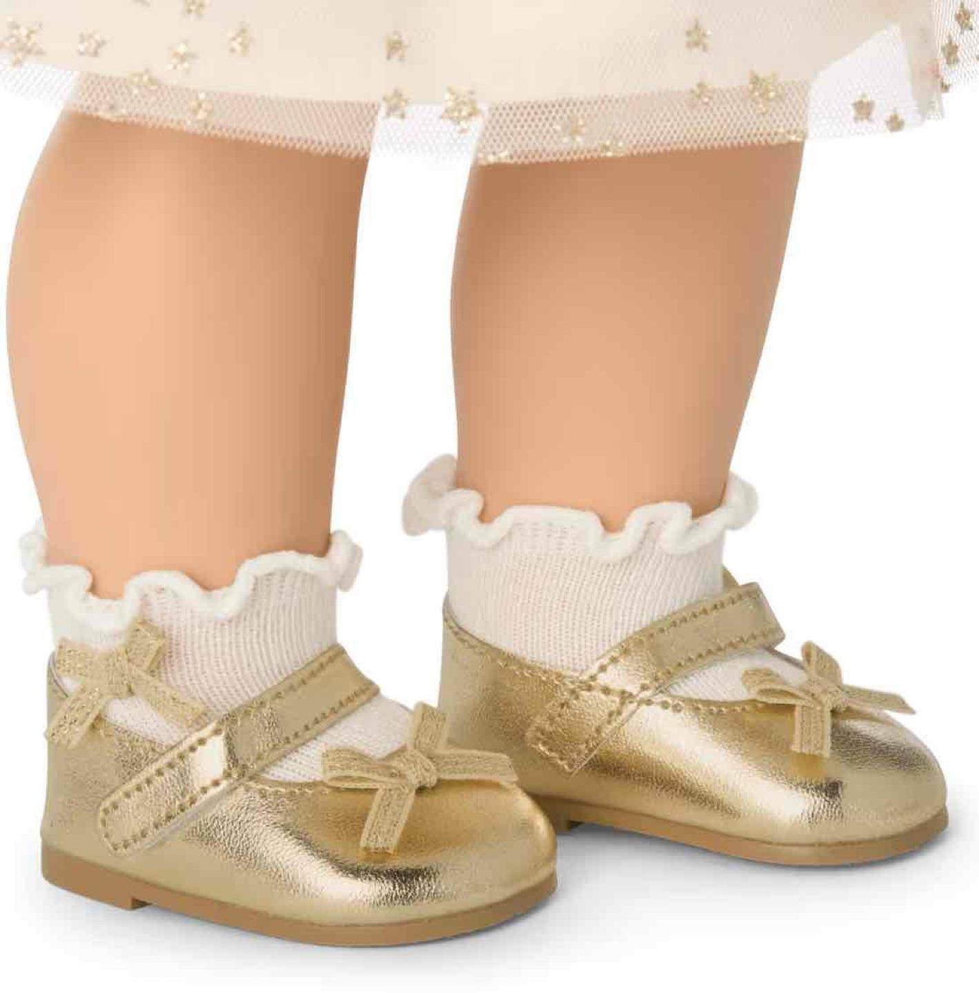 American Girl Janie and Jack Sparkly Cream Celebration Outfit Dress Gold Shoes