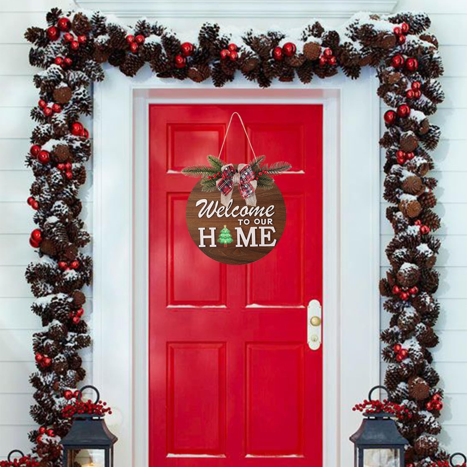 Interchangeable Welcome Sign for Front Door with 4 Seasonal Wreaths and 14 Ch...