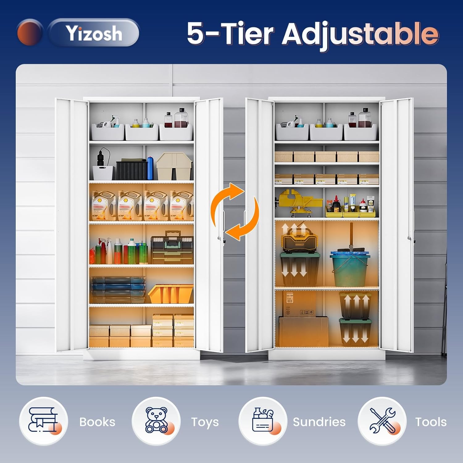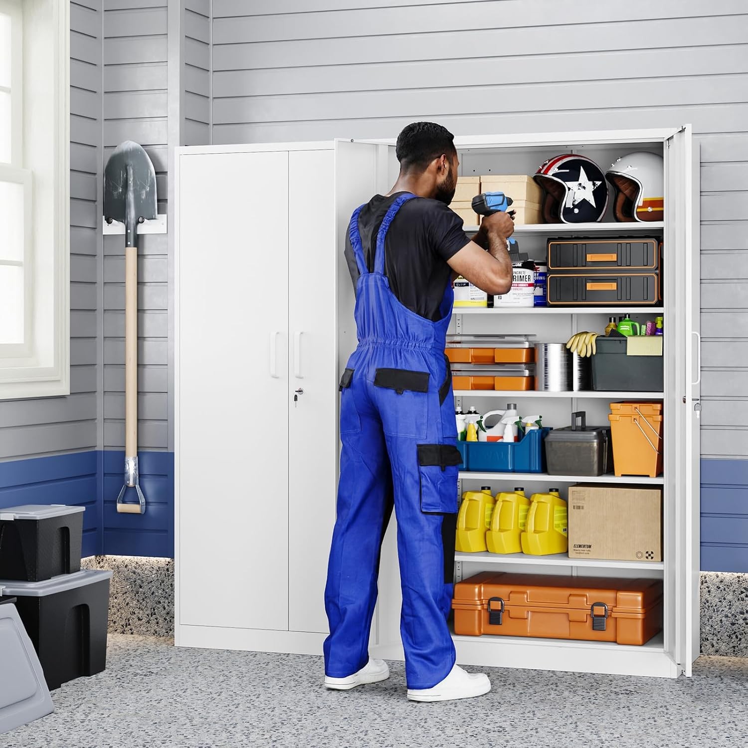 Metal Garage Storage Cabinet with 2 Doors and 5 Adjustable Shelves White
