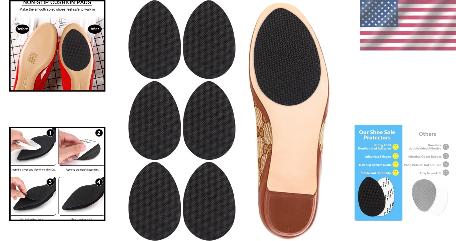 Odorless Non-Slip Shoe Sole Protectors - Elegant Black Anti-Slip Pads, 3 Pairs