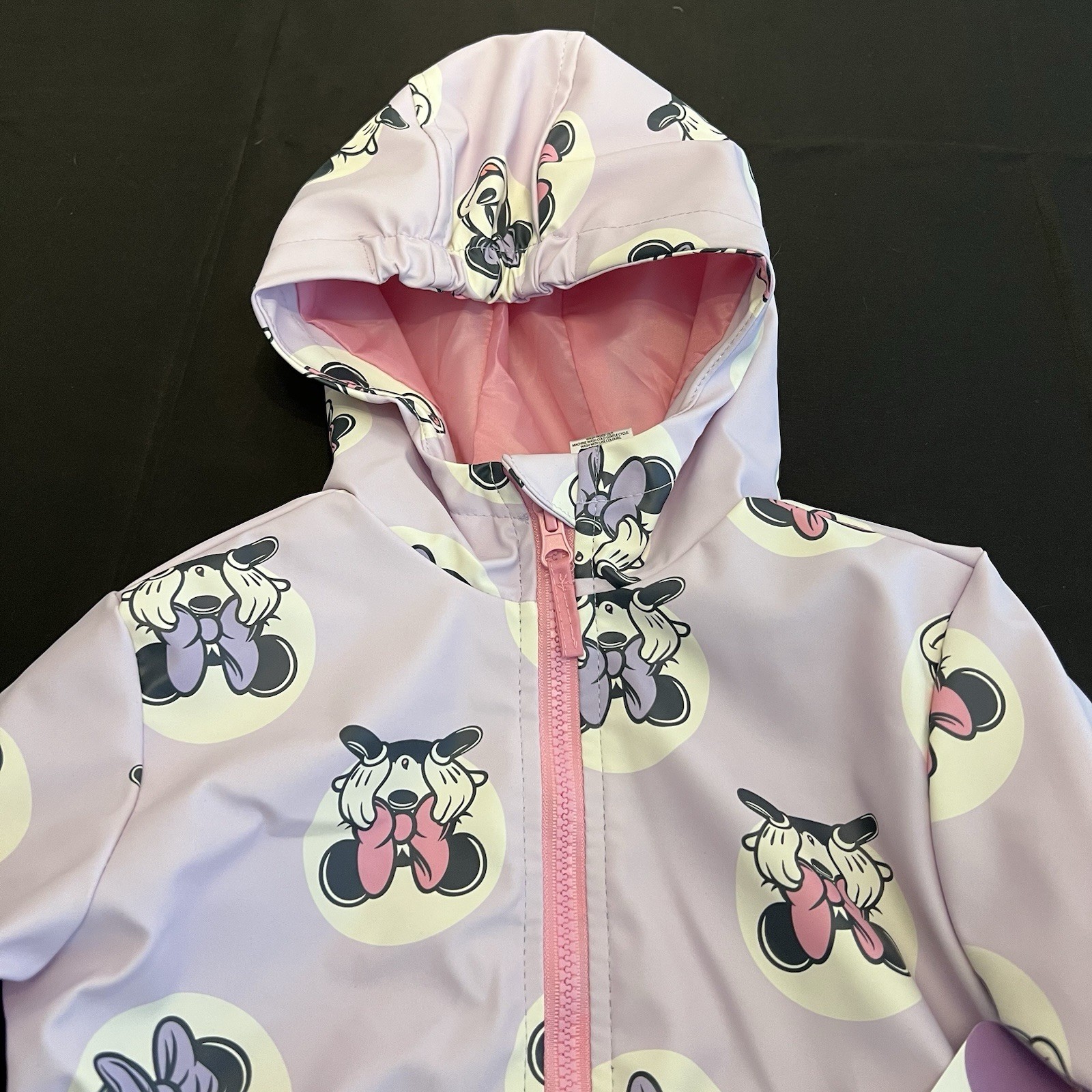 New Disney Junior Minnie Mouse Rain Jacket Girls 4T Lilac Purple Hooded Coat NWT