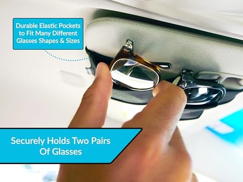 Sunglasses Holder for Car Visor Dual Storage Holds 2 Pairs One-Hand