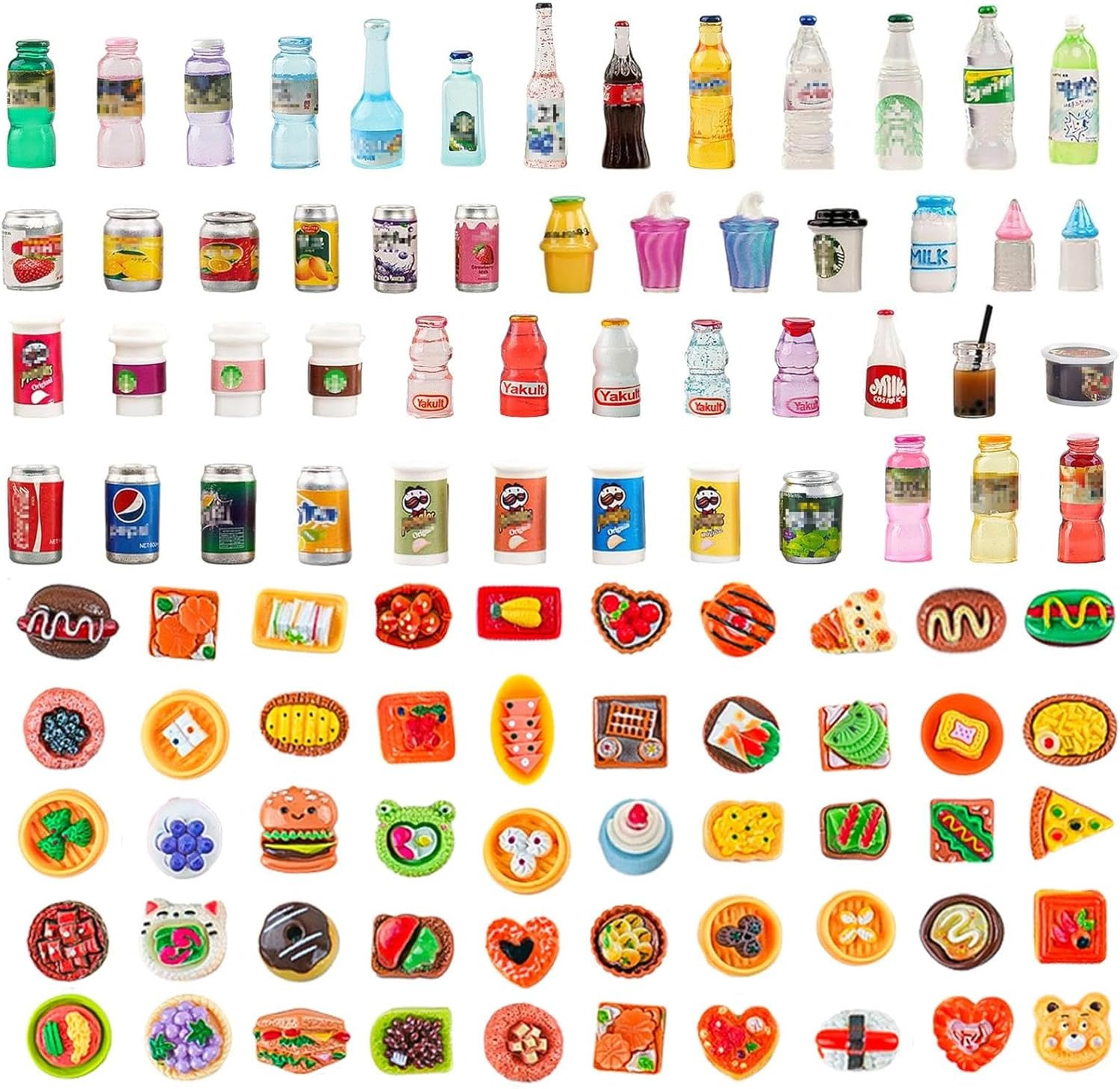 100 Pcs Miniature Food Set Drink Bottles Realistic Resin Dollhouse Accessories
