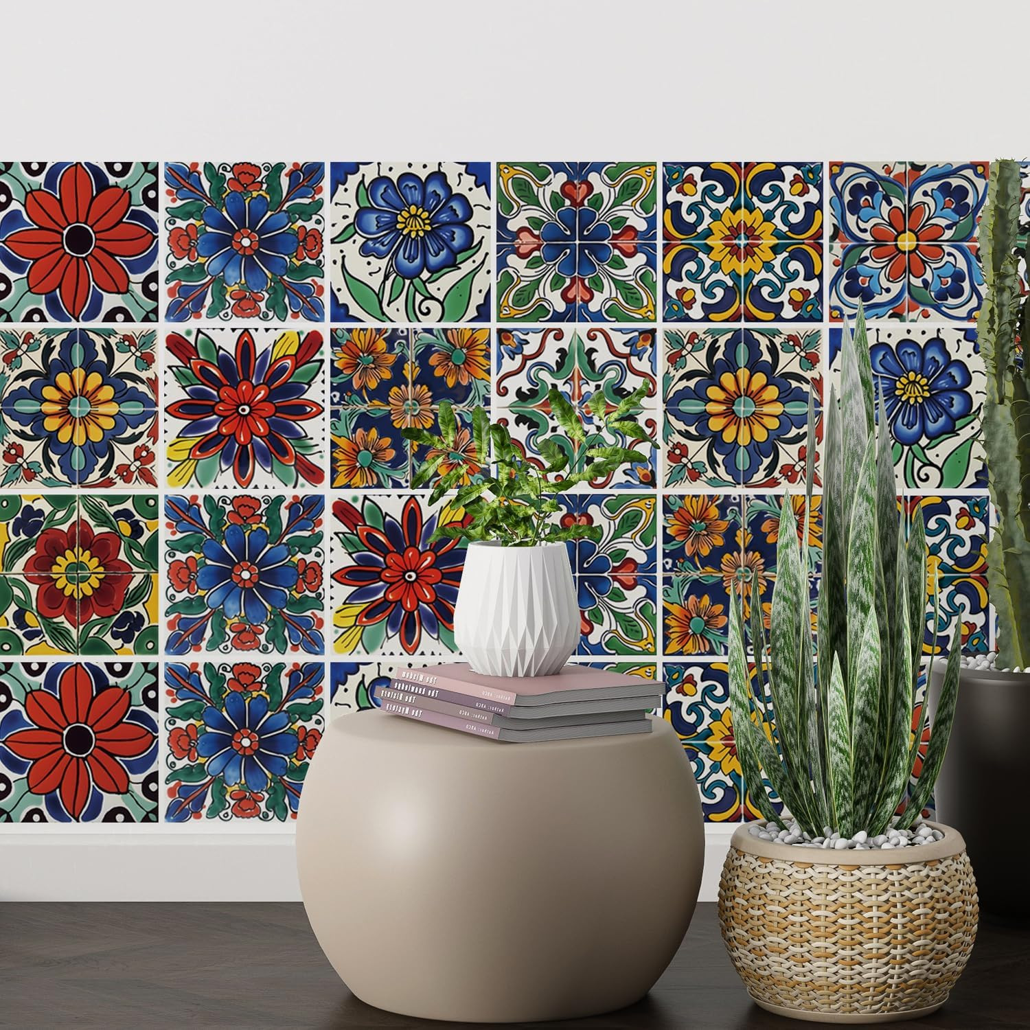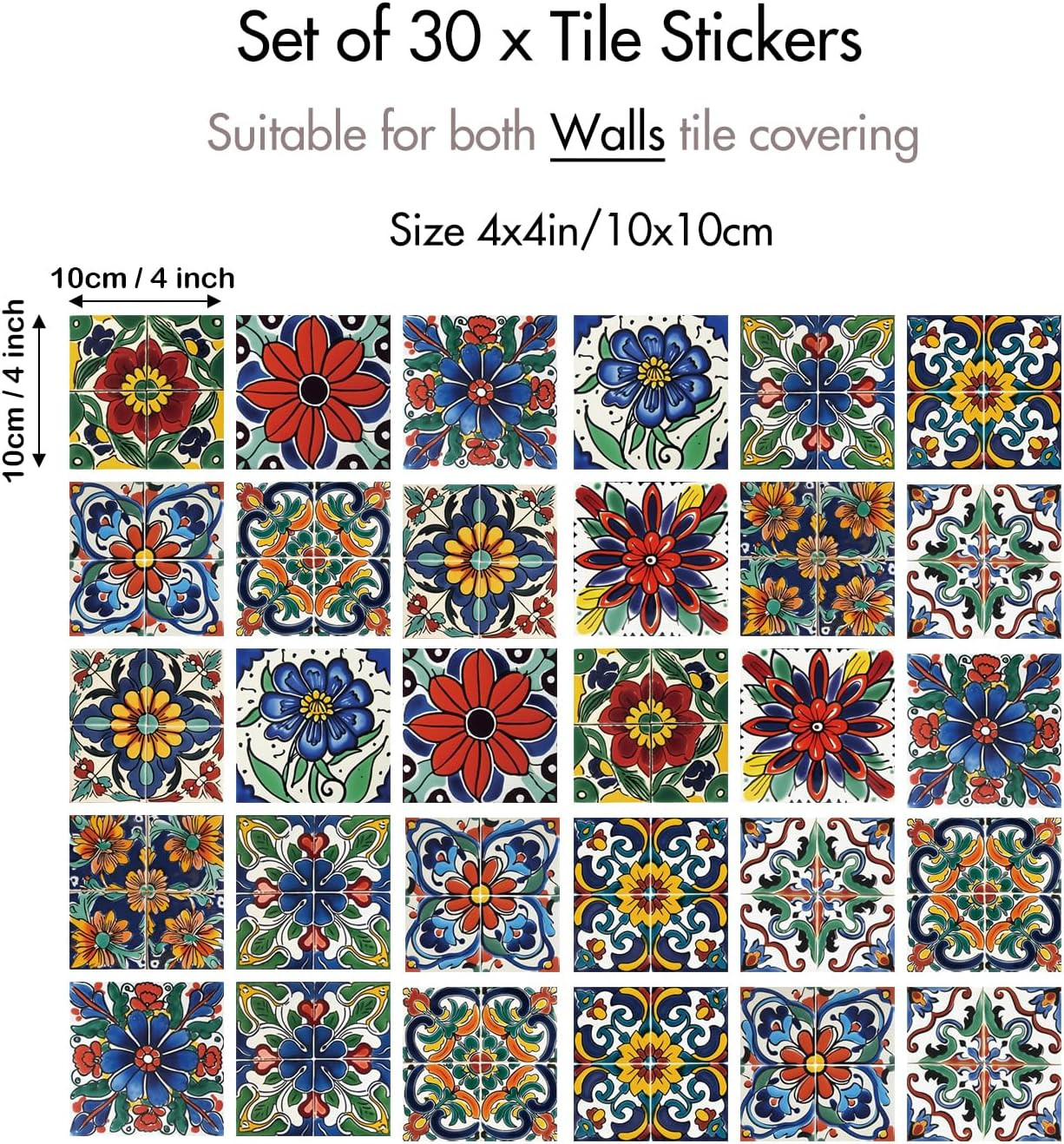 30 Pcs Mediterranean Style Peel and Stick Wall Tile Decals - Waterproof Vinyl St