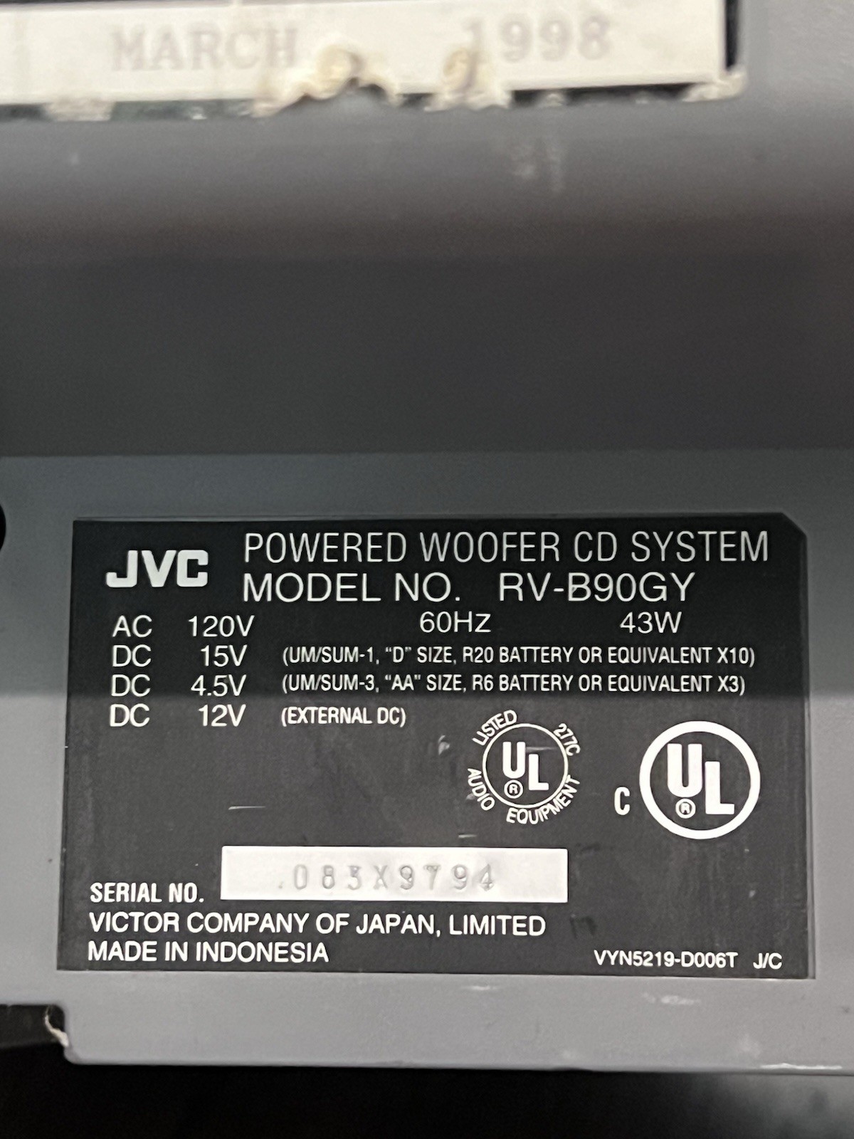 Модель: JVC RV-B90