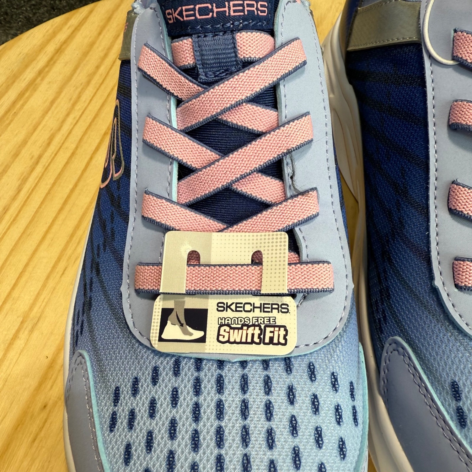 как выглядит Skechers Girls Lightweight Hands Free Swift Fit Flex Sneaker Blue/Pink 11C фото