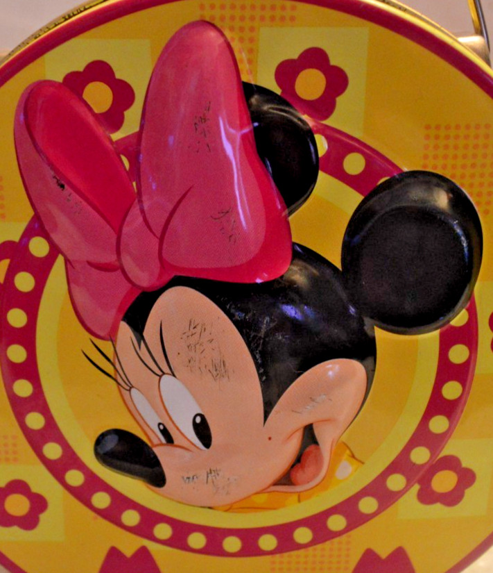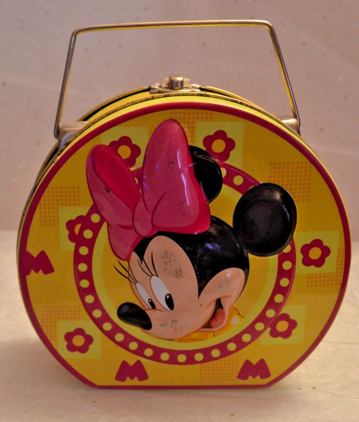 • Disney Minnie Mouse Small Tin Lunch Box Yellow Pink 6" Tall