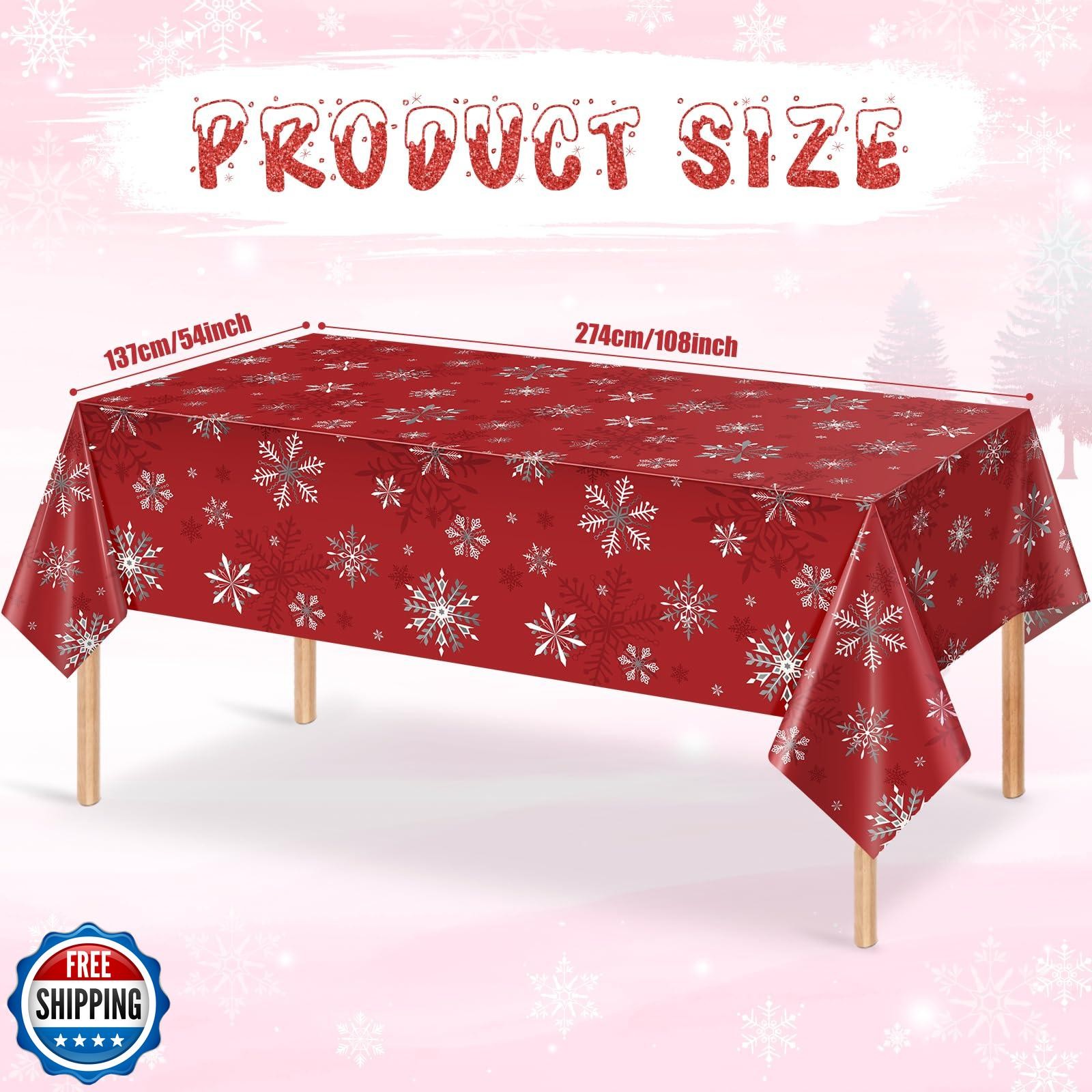 3 Pack Red Christmas Snowflake Plastic Tablecloth Decorations, Re