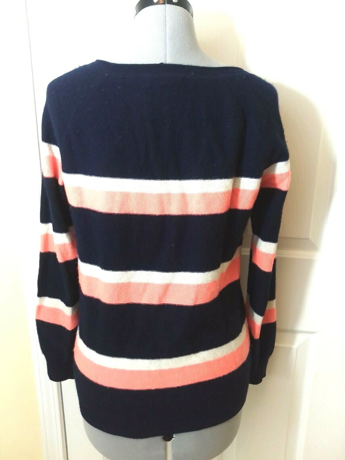 AQUA Cashmere Navy Blue White Orange Women's Sweater Size XS