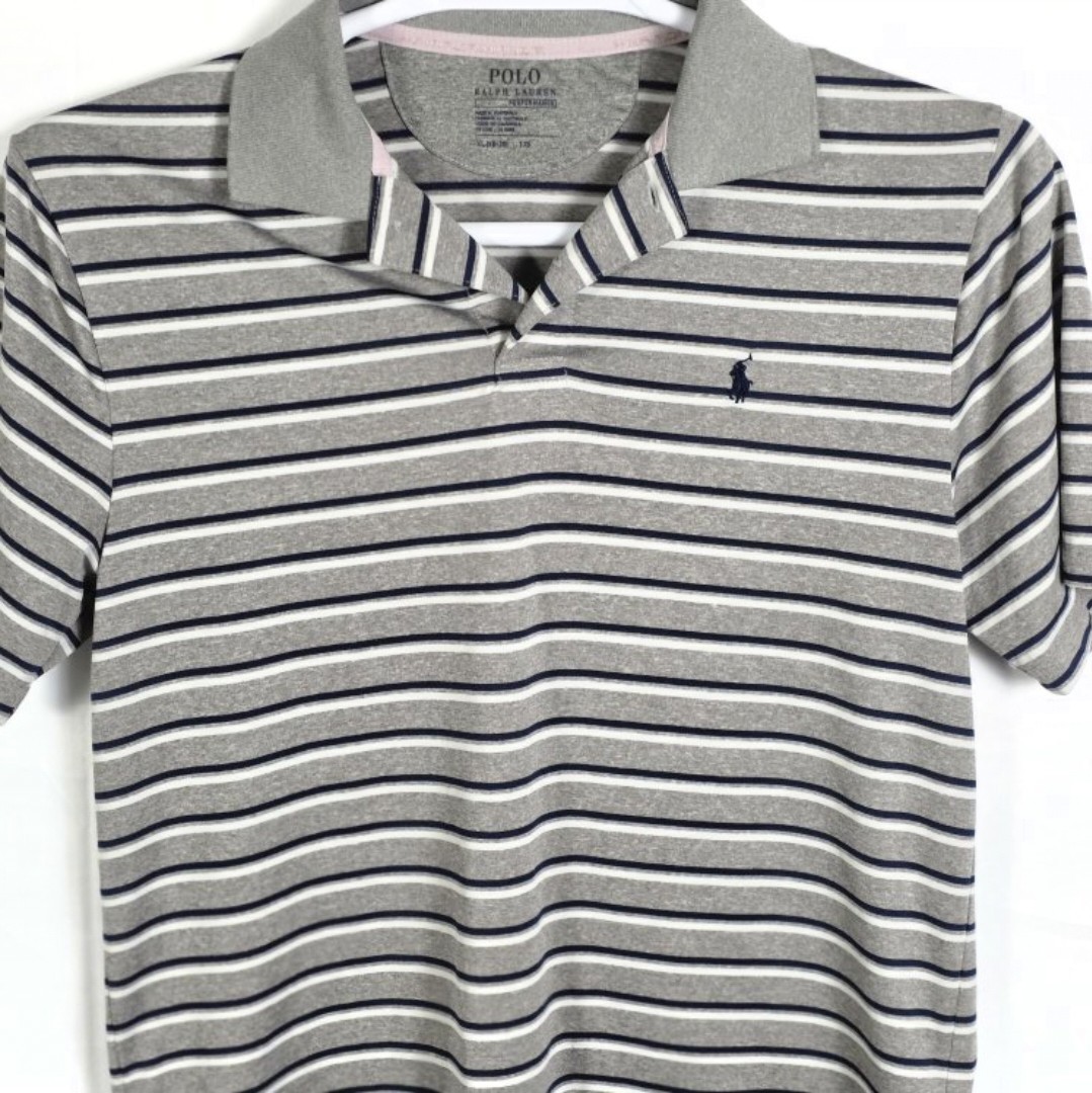 как выглядит Polo Ralph Lauren Youth XL 18-20 Grey Preformance Stripped Short Sleeve Shirt фото