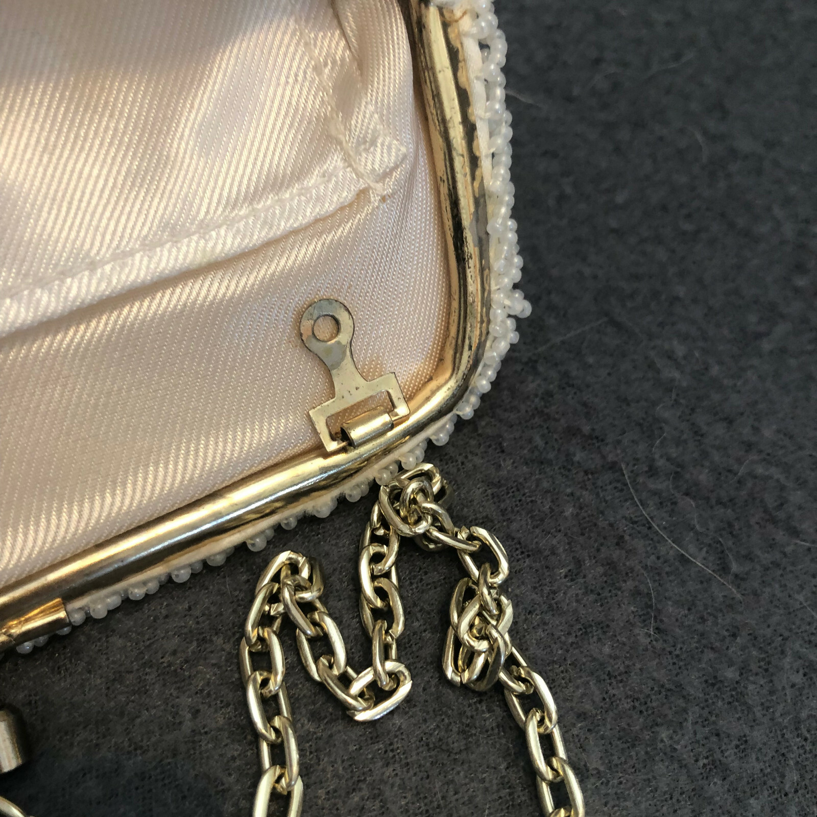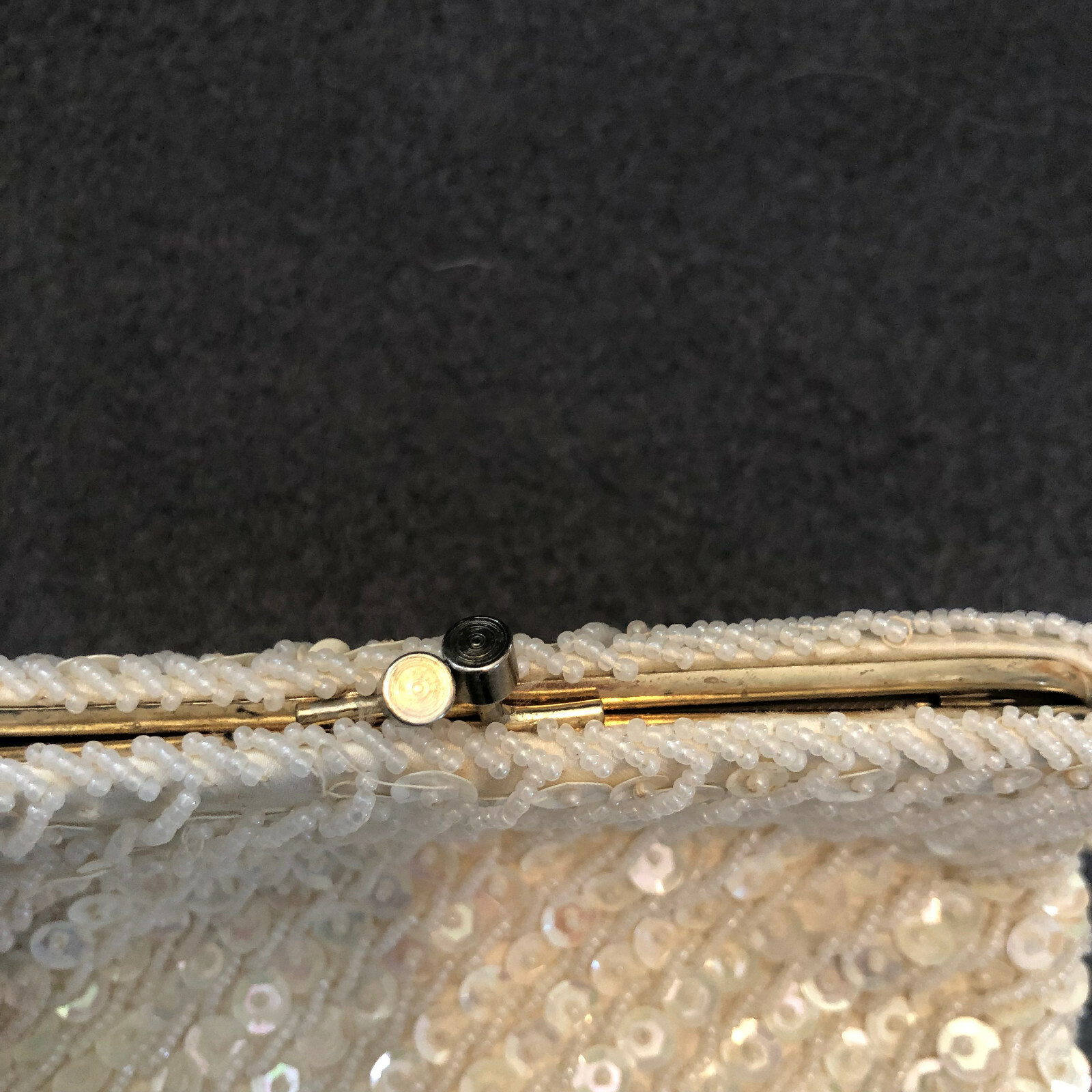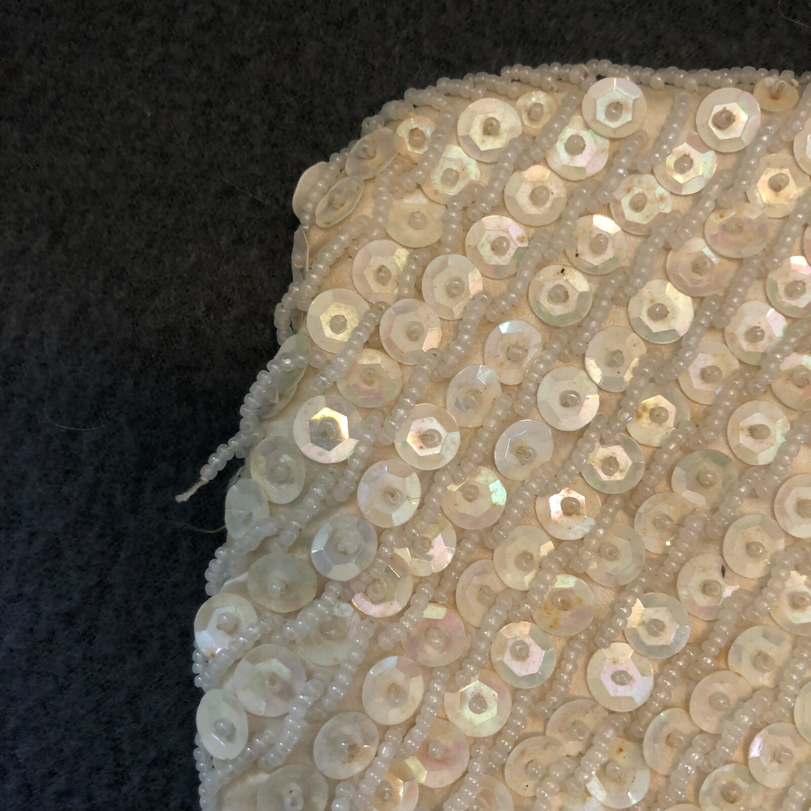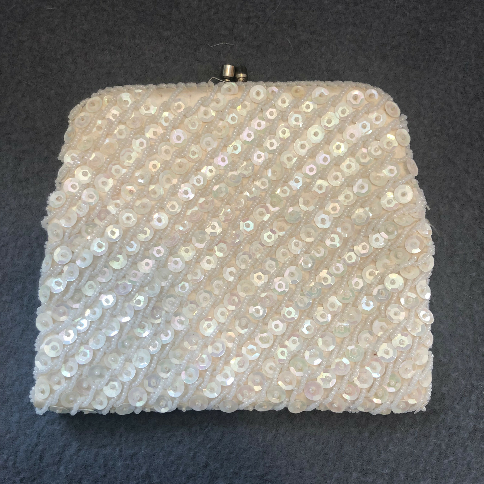 как выглядит Vintage white sequin beaded evening bag, clutch purse, prom, wedding mid century фото