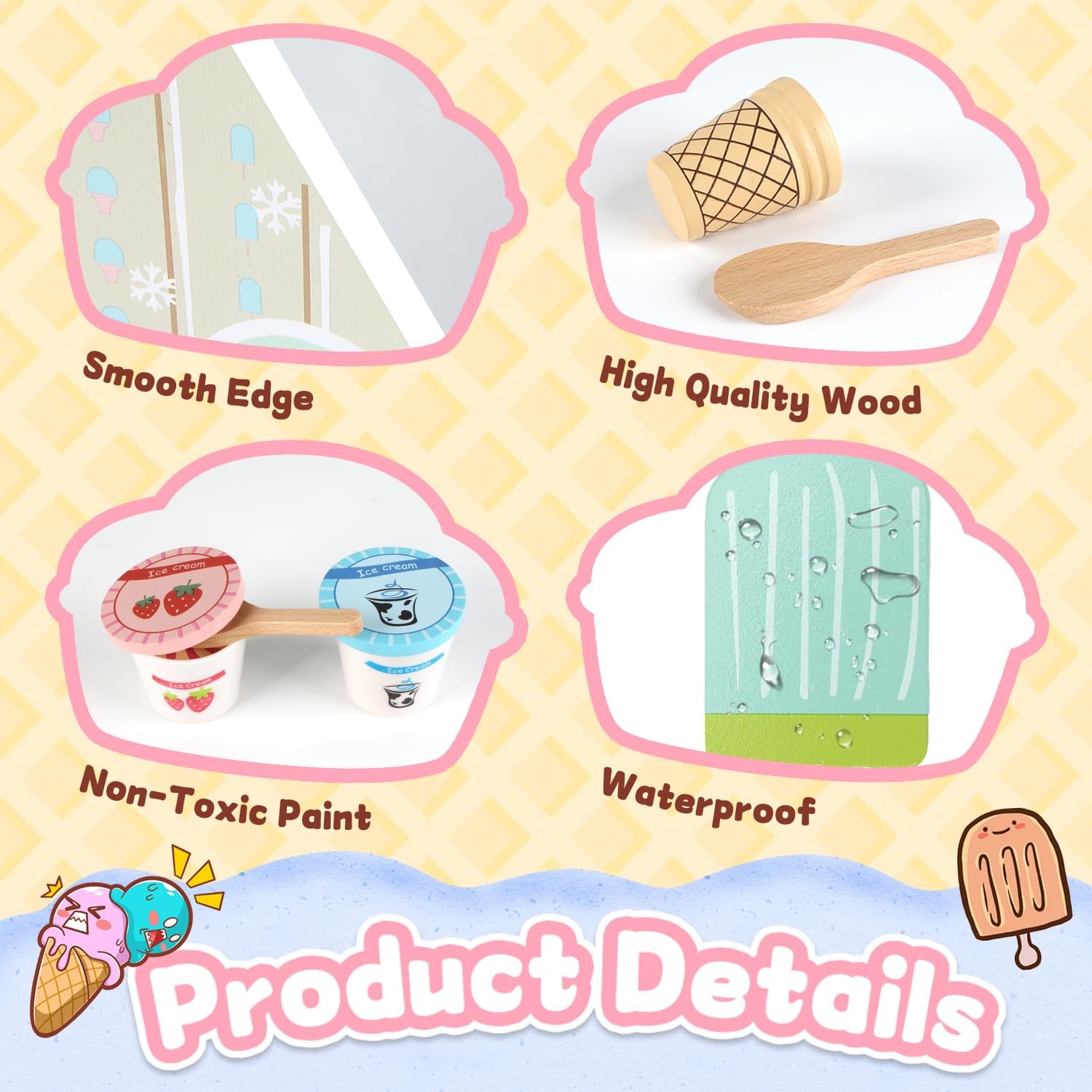 как выглядит Ice Cream Toy, 46 PCS Wooden Pretend Play Set for Kids, Food Counter Shop Pla... фото