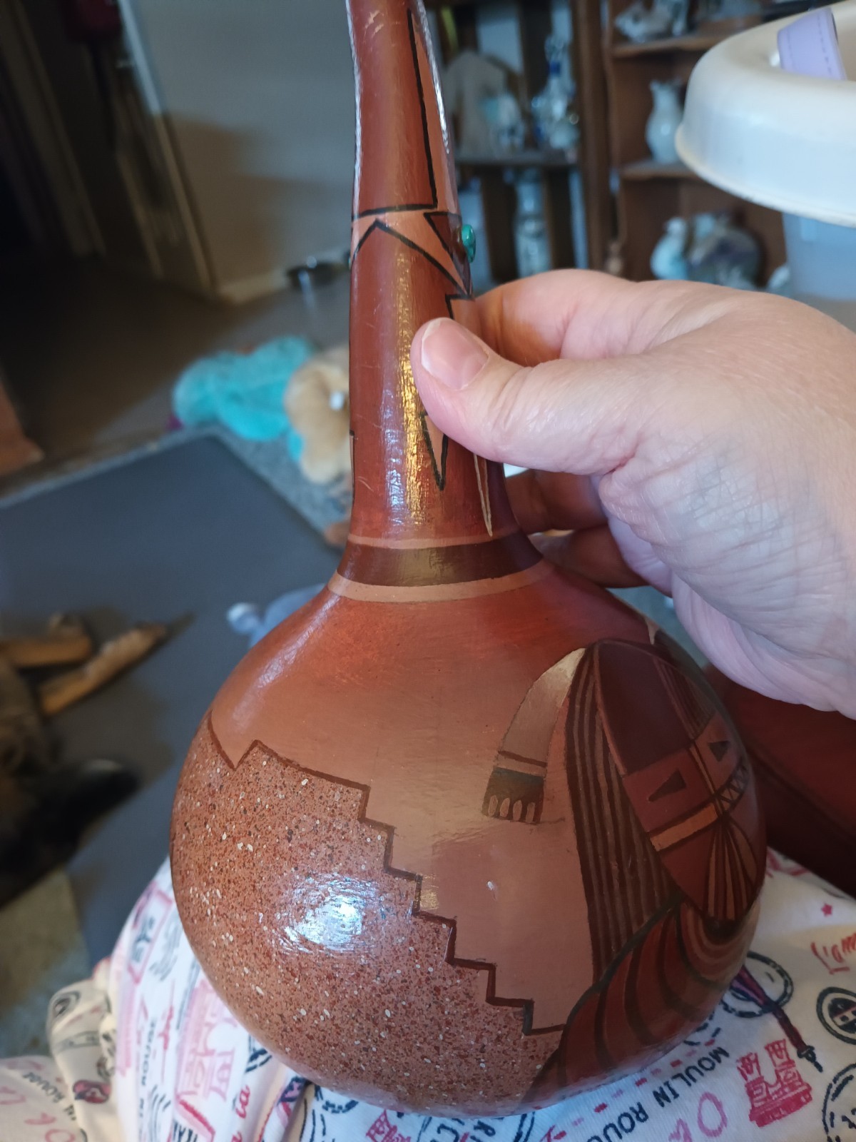 как выглядит Hand Carved Painted Gourd Southwestern Folk Art artist signed фото