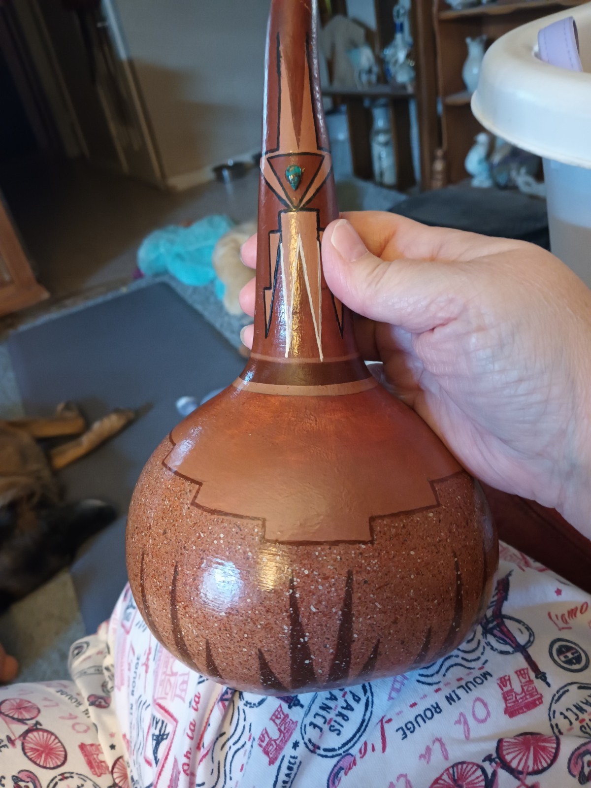 Hand Carved Painted Gourd Southwestern Folk Art artist signed