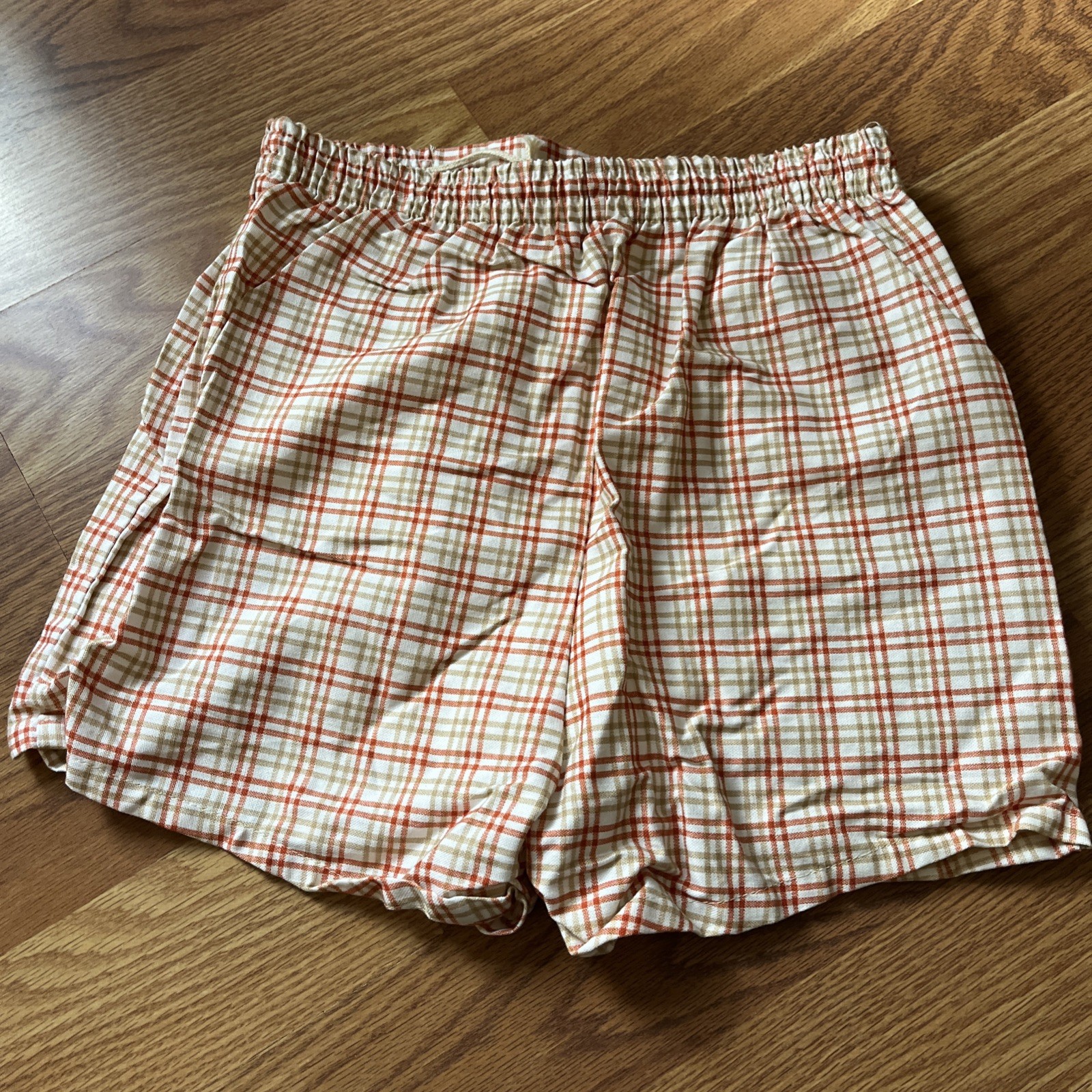 как выглядит Jantzen Vintage Retro 1960s 70s plaid swim shorts 38 Orange Tan Button фото